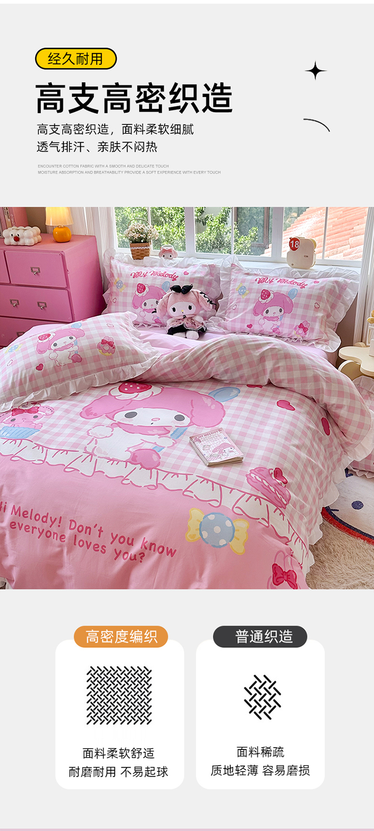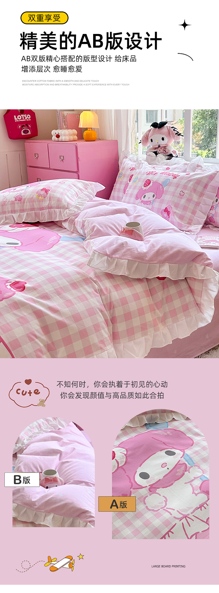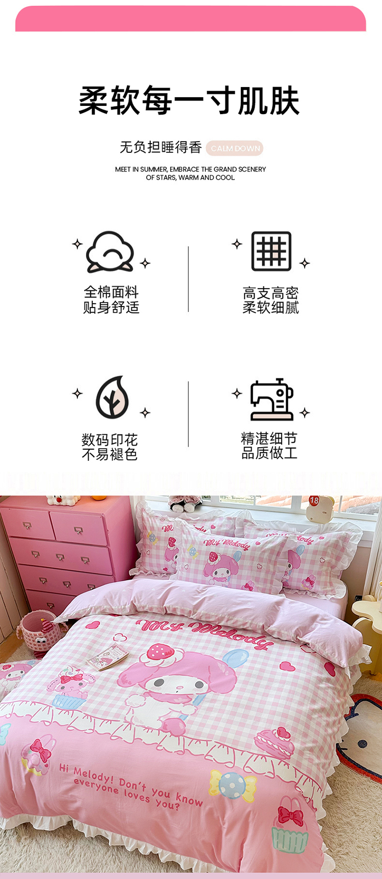 当前位置: 91家纺网 > 商品网购 > 床品套件 > 四件套 > 全棉普通四件套 > 2025新款大版三丽鸥系列 纯棉床单全棉床裙学生三四件套 花边款 星黛美乐蒂-白花边