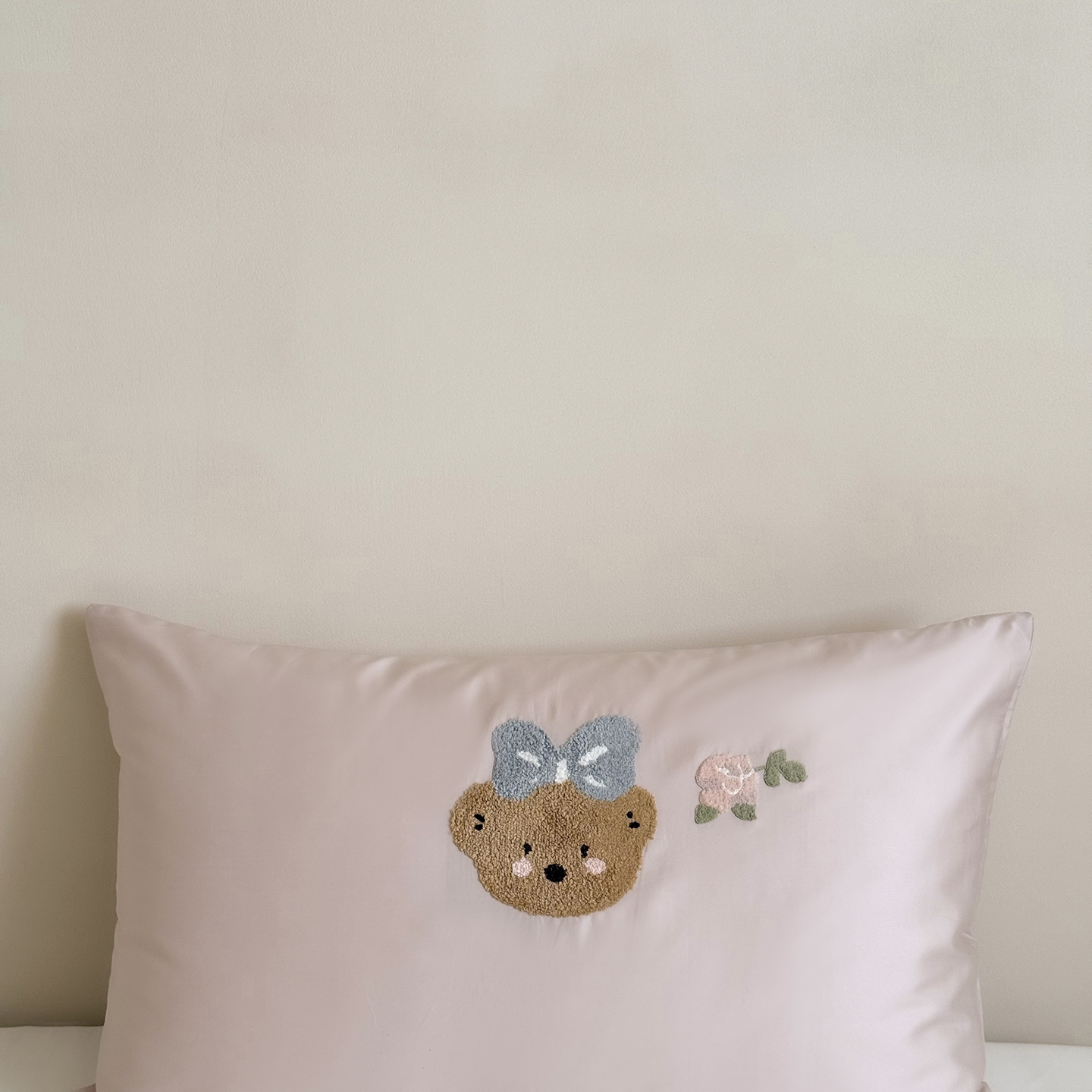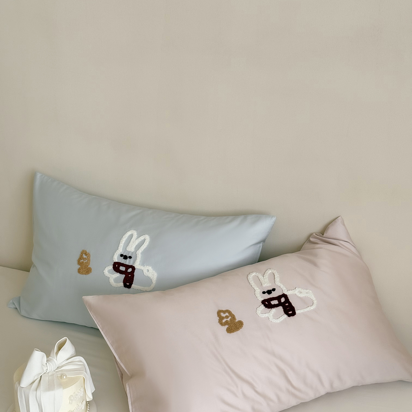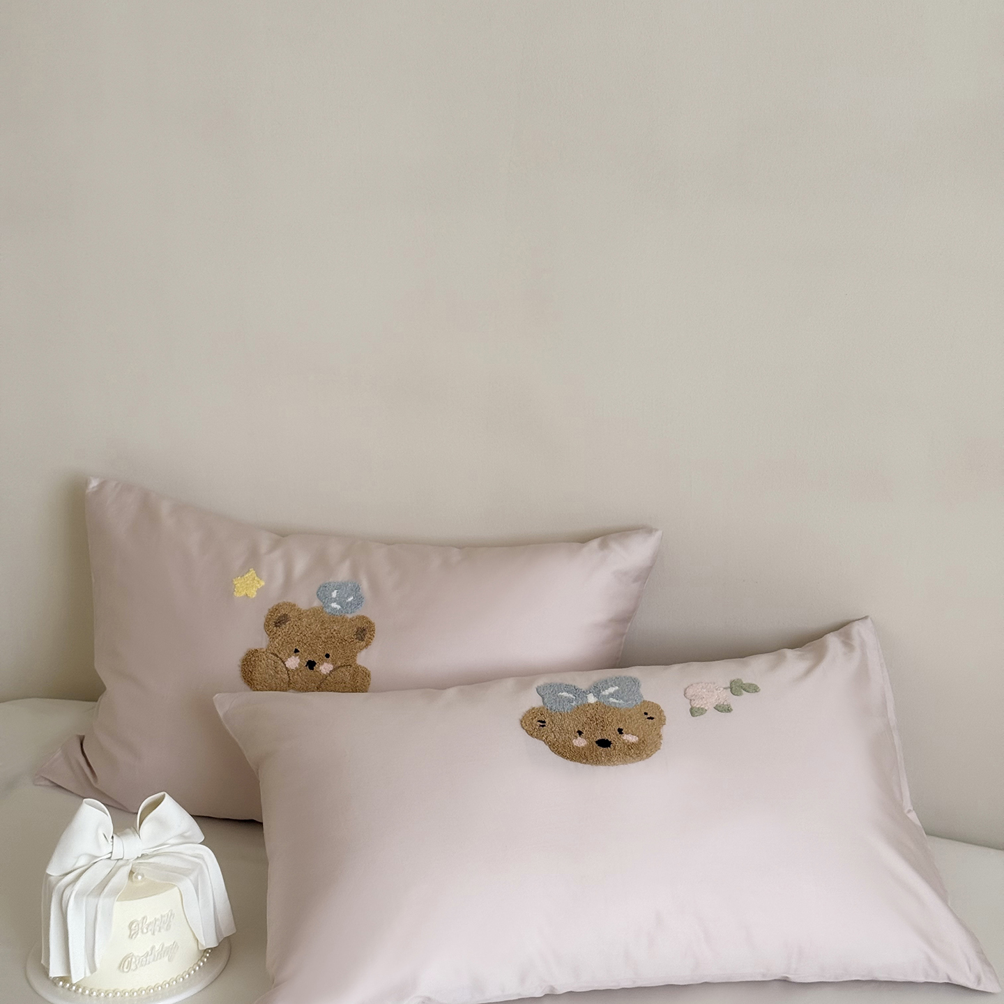 鹿班家居 2025新款100S长绒棉毛巾绣单品枕套系列-白小兔&泡芙熊(标准会员-2元) 泡芙熊-粉色(B)