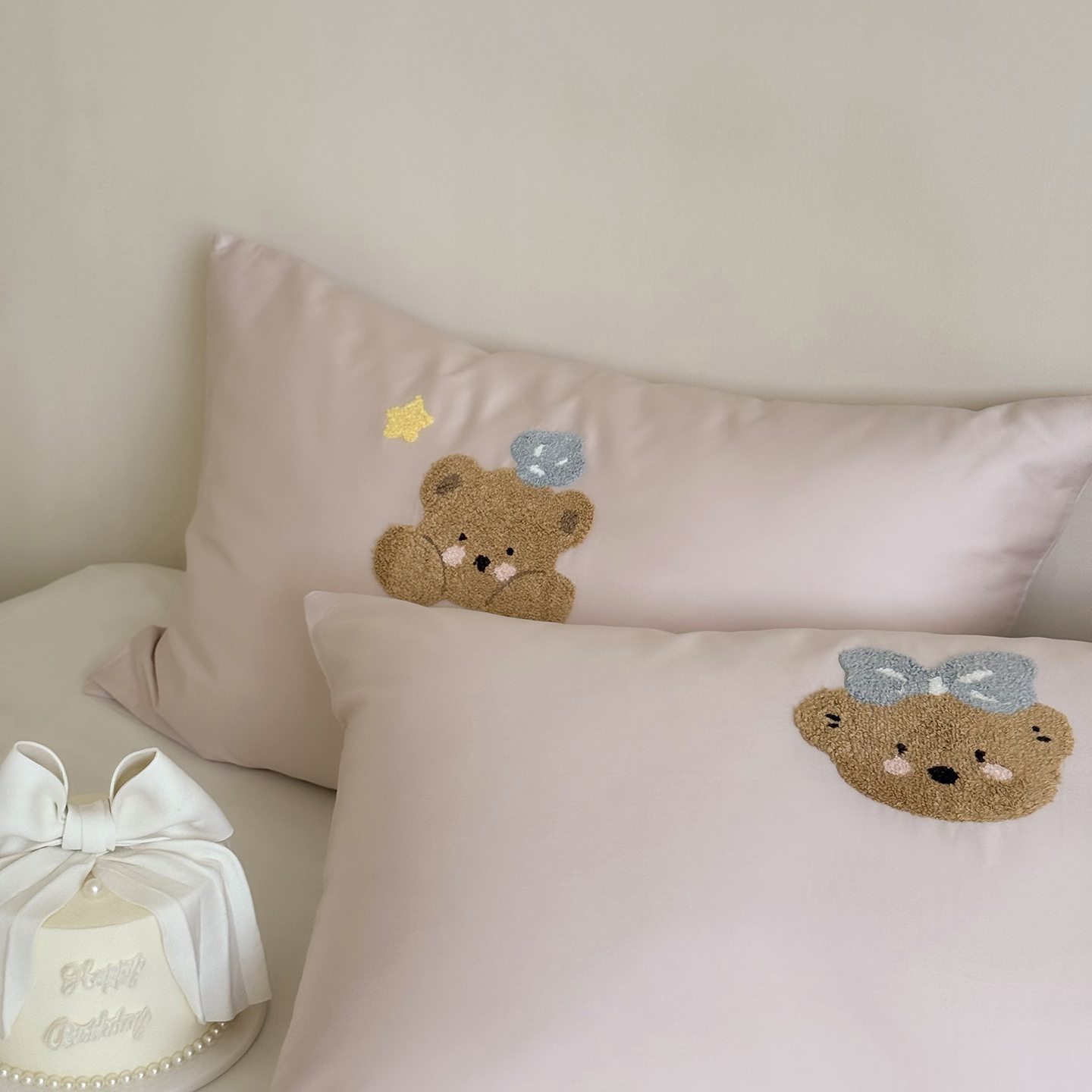 商品名称:鹿班家居 2025新款100S长绒棉毛巾绣单品枕套系列-白小兔&泡芙熊(标准会员-2元) 泡芙熊-粉色(B)