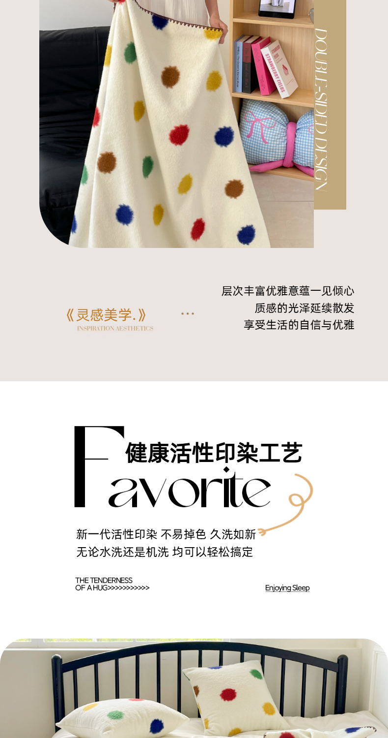 (总)晚爱家纺(原晚安家居) 2025新款跨境暖羊绒双面绵羊绒沙发毯多功能盖毯,彩波点,糖块,节日派对,咖波点,蓝郁,梦幻花园,南山蓝,七彩条,虚幻灰,虚幻米,组合图仅供展示不可下单