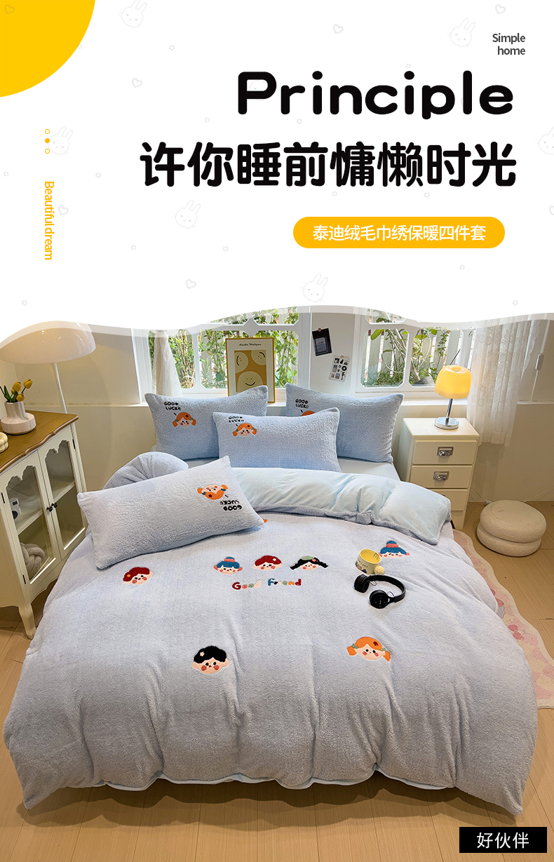 当前位置: 91家纺网 > 商品网购 > 床品套件 > 四件套 > 牛奶绒四件套 > 金爱家 2025新款泰迪绒毛巾绣四件套 泰迪绒-好伙伴
