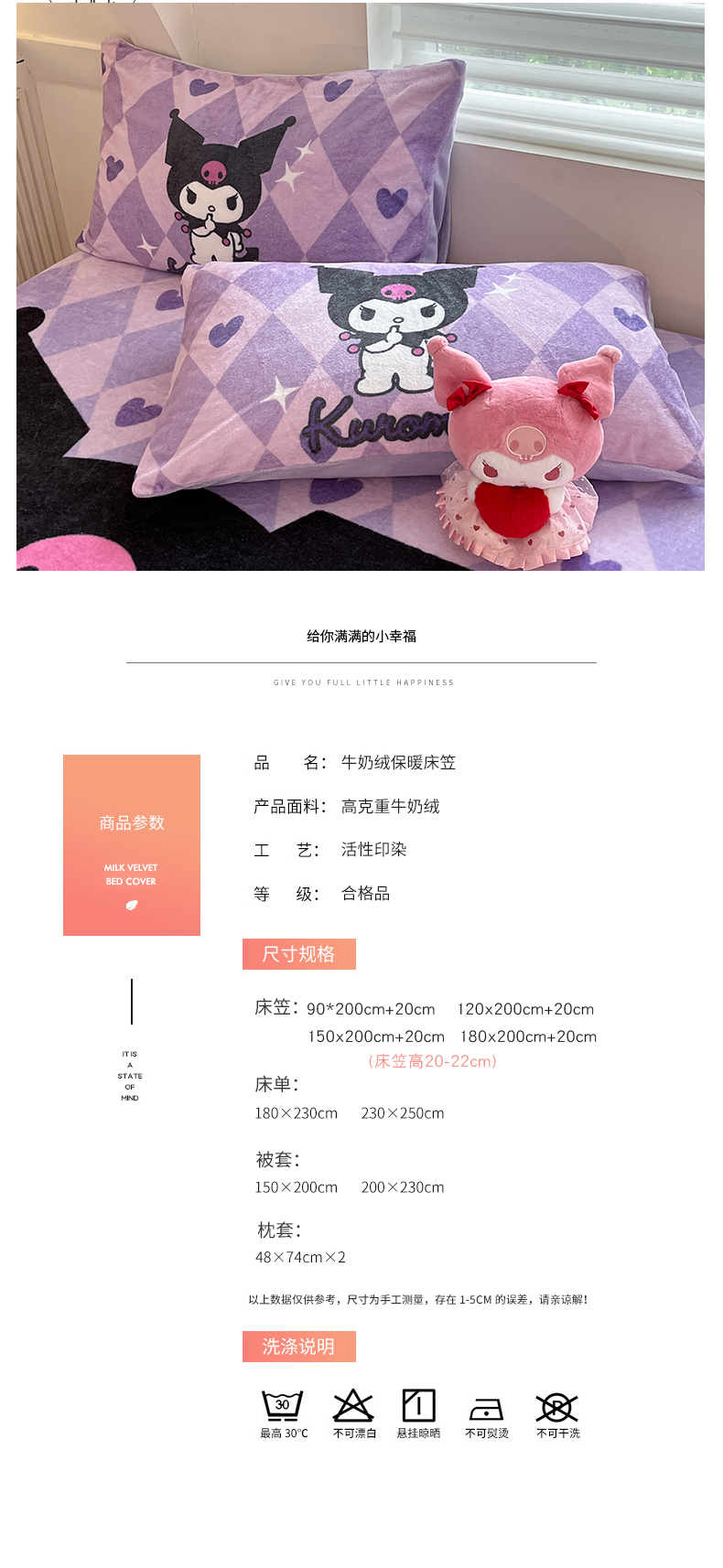 当前位置: 91家纺网 > 商品网购 > 床上用品 > 床笠 > 金爱家 2025新款高克重牛奶绒单品系列保暖床单床笠单件 绒-D桃心美美库洛米