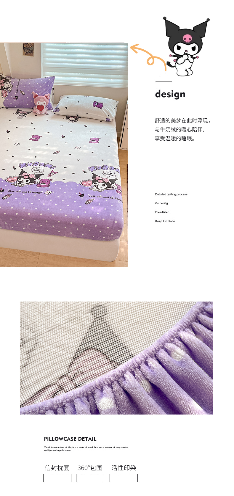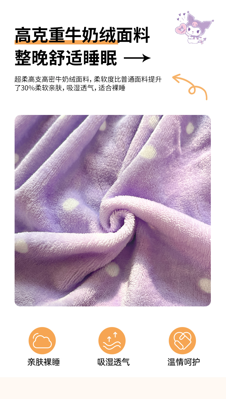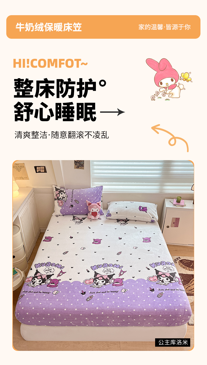 金爱家 2025新款三丽鸥牛奶绒单品系列床单床笠单件 绒-X公主库洛米