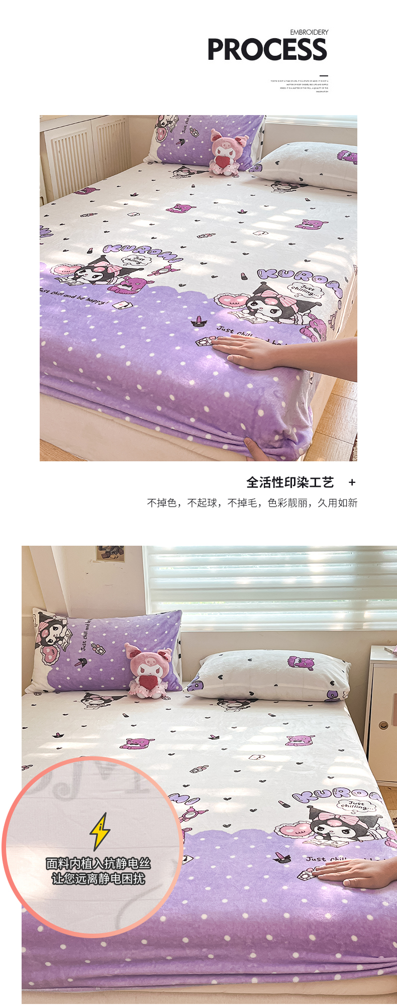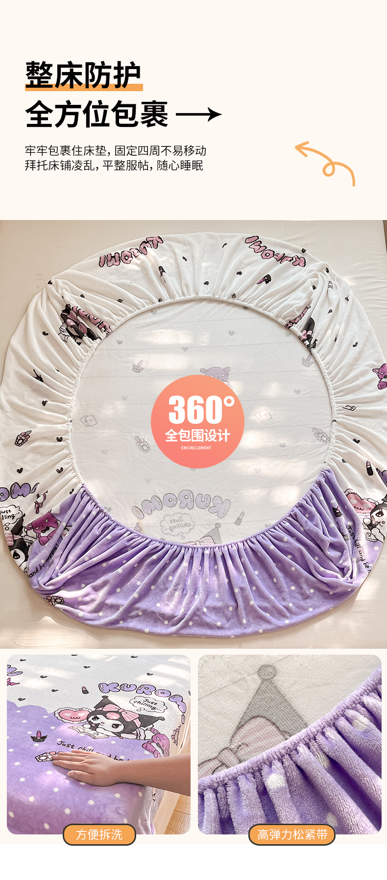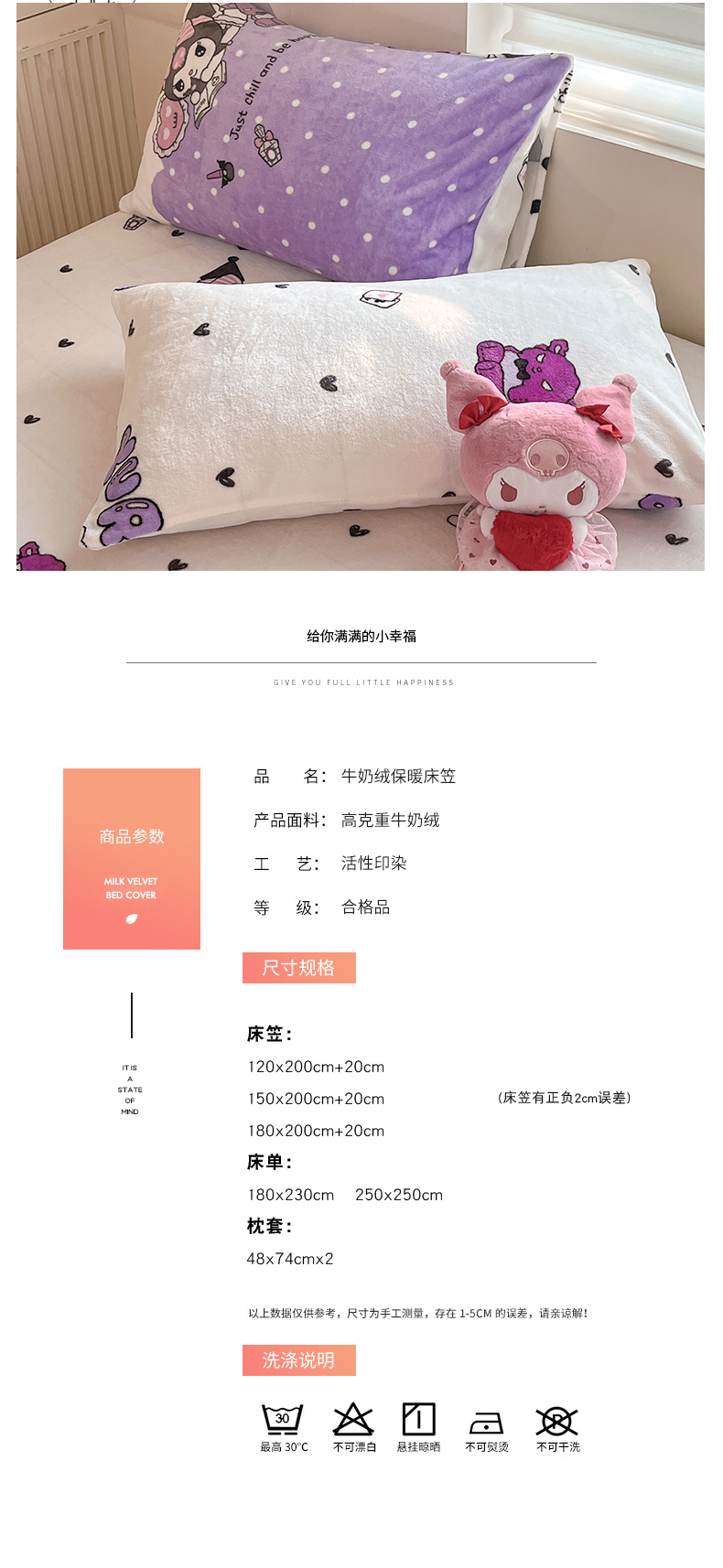 金爱家 2025新款三丽鸥牛奶绒单品系列床单床笠单件 绒-X公主库洛米