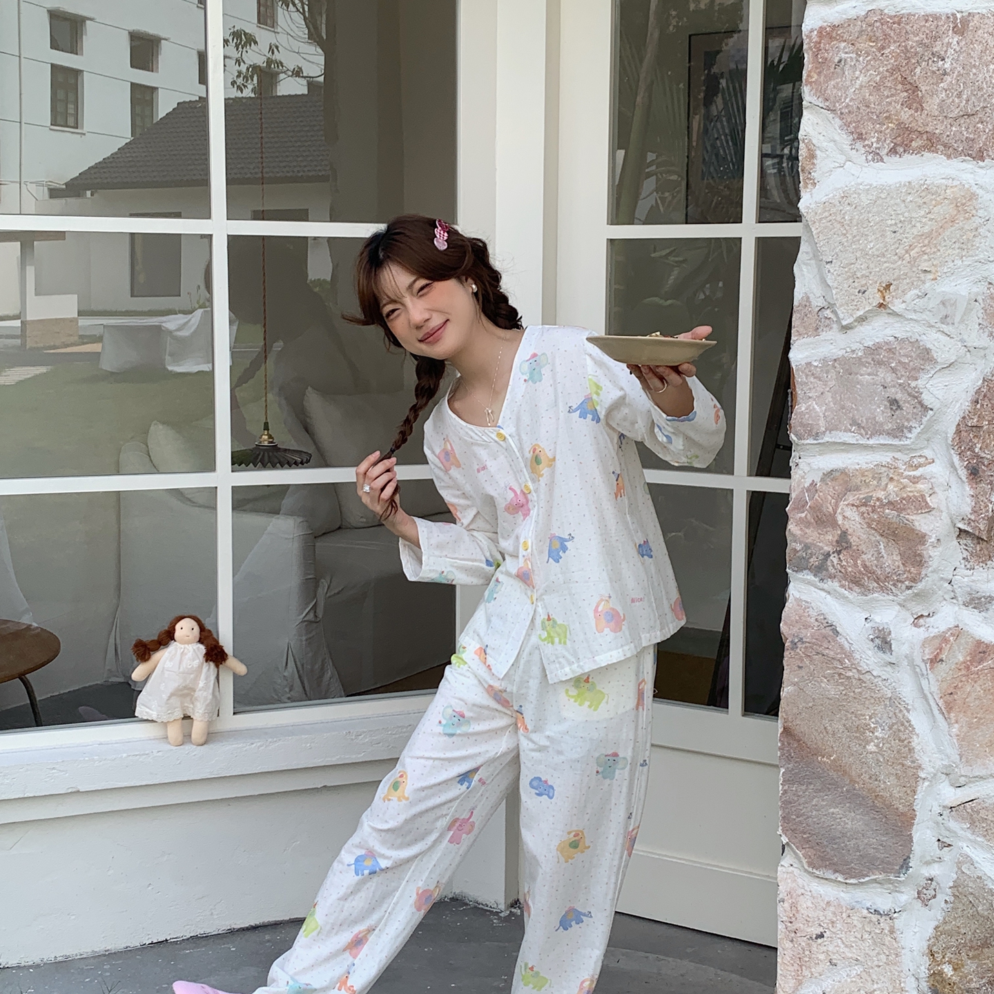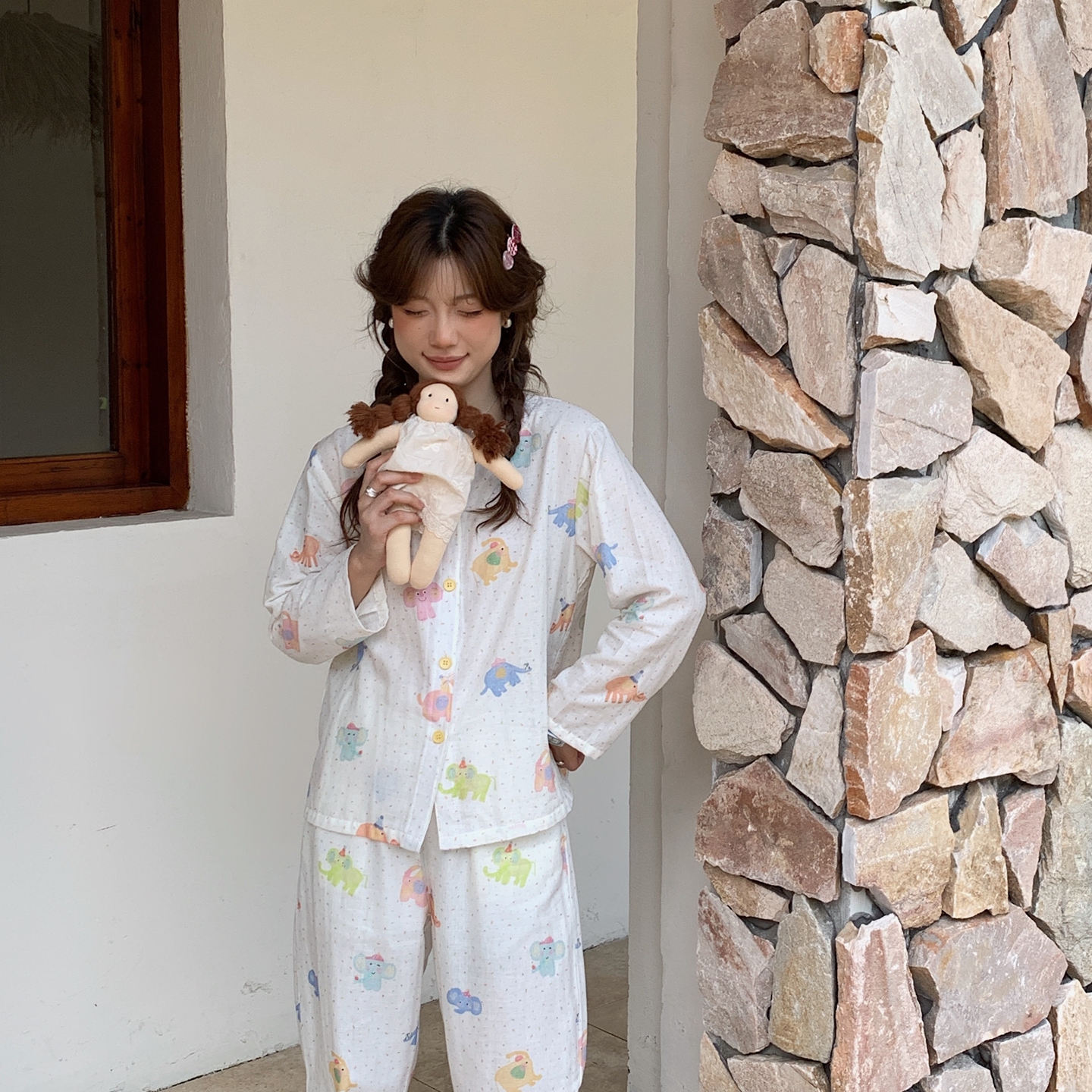 (总)纽约生活 2025新款绉布圆领开扣长袖长裤(会员-5),波比熊,黑碎花猫咪,蝴蝶结粉熊,花花狗,蓝碎花,塞纳花房
