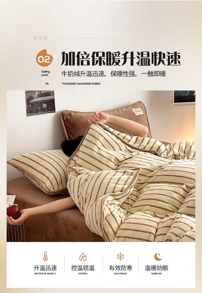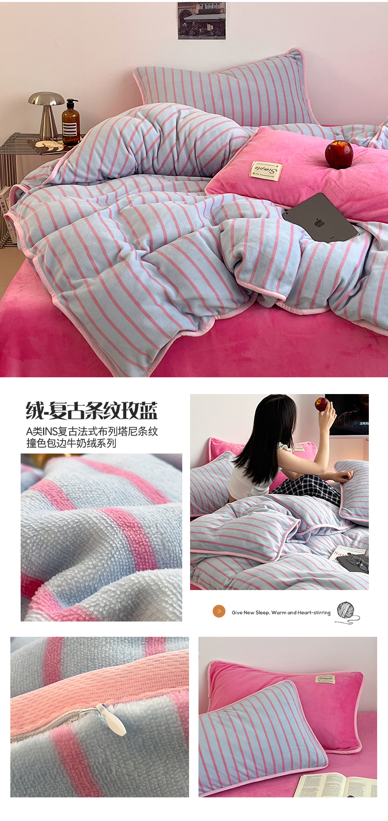 当前位置: 91家纺网 > 商品网购 > 床品套件 > 四件套 > 牛奶绒四件套 > 桃子家居 2025新款A类ins复古条纹法式布列塔尼条纹简约撞色加厚牛奶绒系列四件套 绒-复古条纹紫咖棕