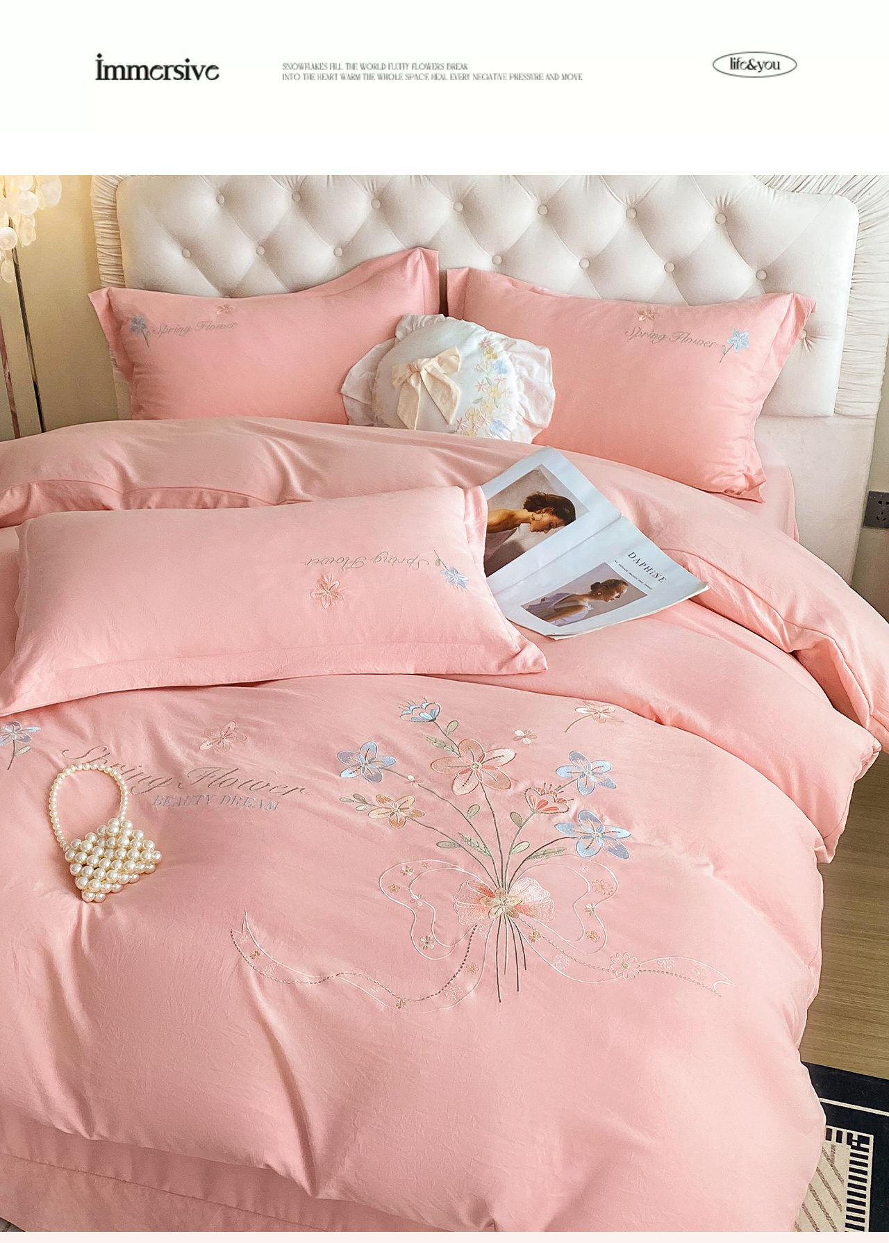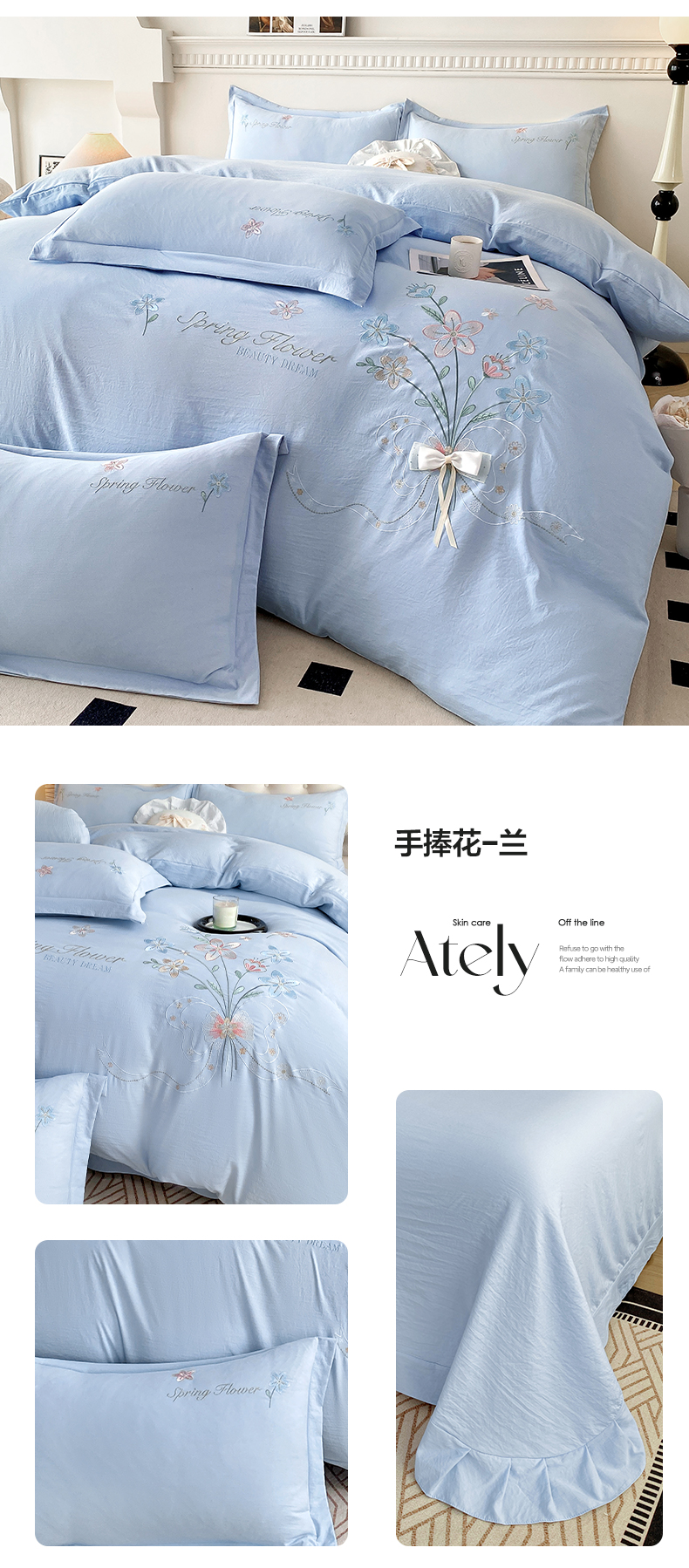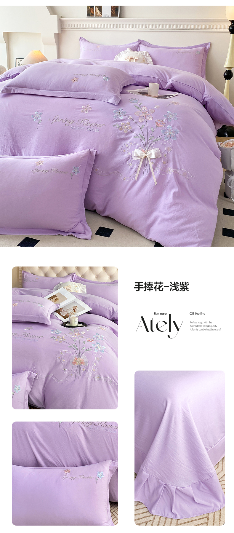 商品名称:大麦乐田 2025新款糯小棉立体绣花吊边四件套-手捧花 手捧花 浅紫