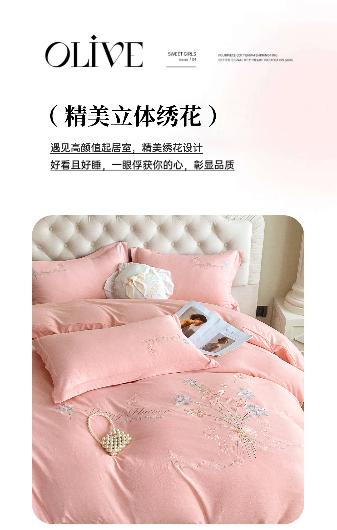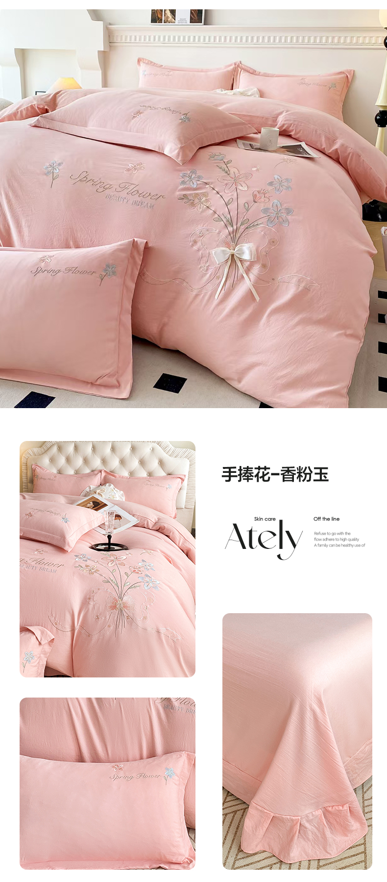 (总)大麦乐田 2025新款四季亲肤磨毛立体花刺绣工艺款四件套-花香蝶舞,花香蝶舞-香粉玉,花香蝶舞-宾利兰,花香蝶舞-梦幻紫,花香蝶舞-绅士灰,花香蝶舞-奶茶绿,花香蝶舞-大红