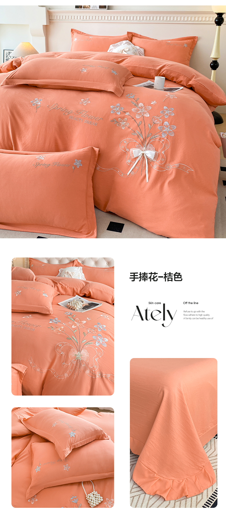 (总)大麦乐田 2025新款糯小棉立体绣花吊边四件套-蝶梦花语,蝶梦花语 粉玉,蝶梦花语 桔色,蝶梦花语 浅兰,蝶梦花语 浅绿,蝶梦花语 浅紫