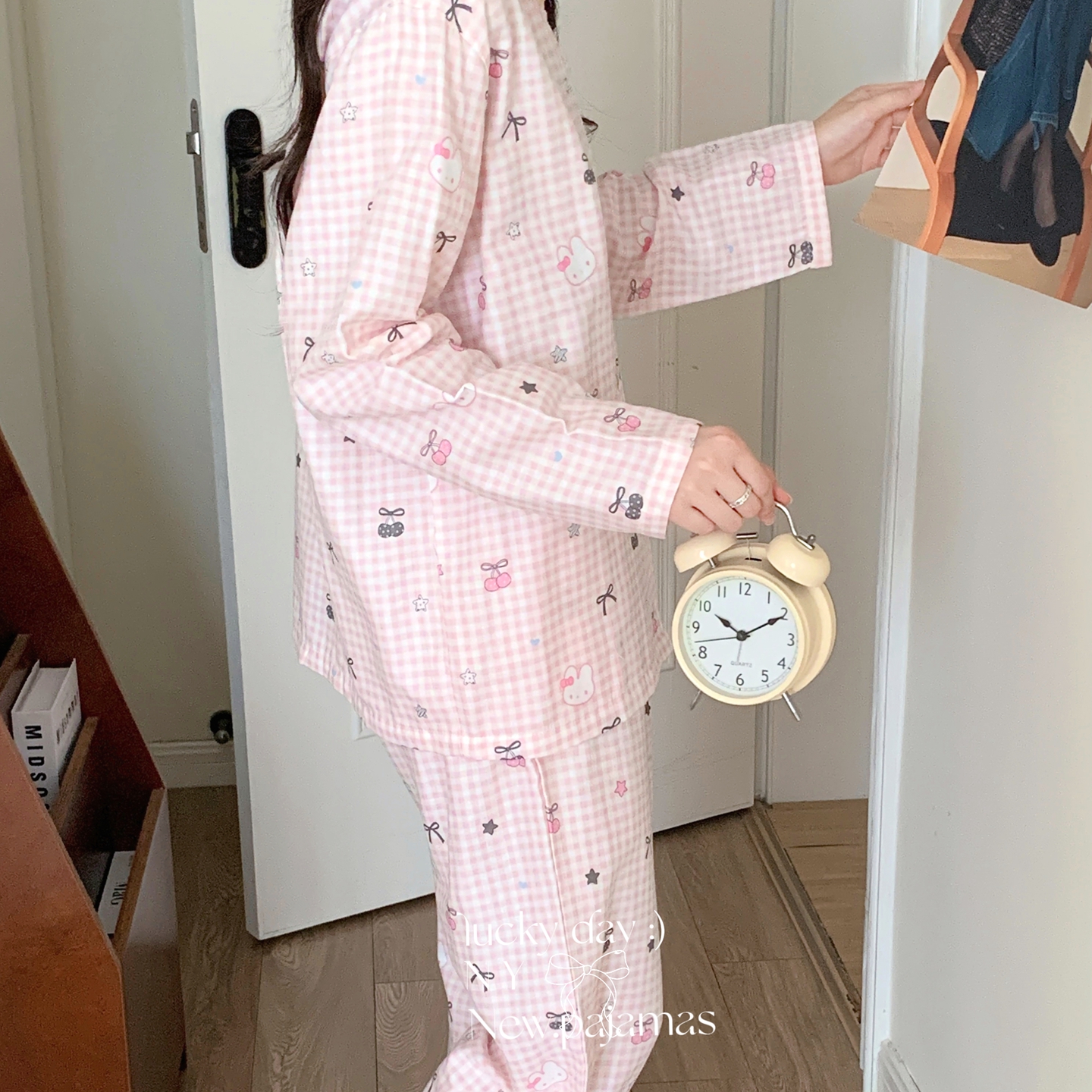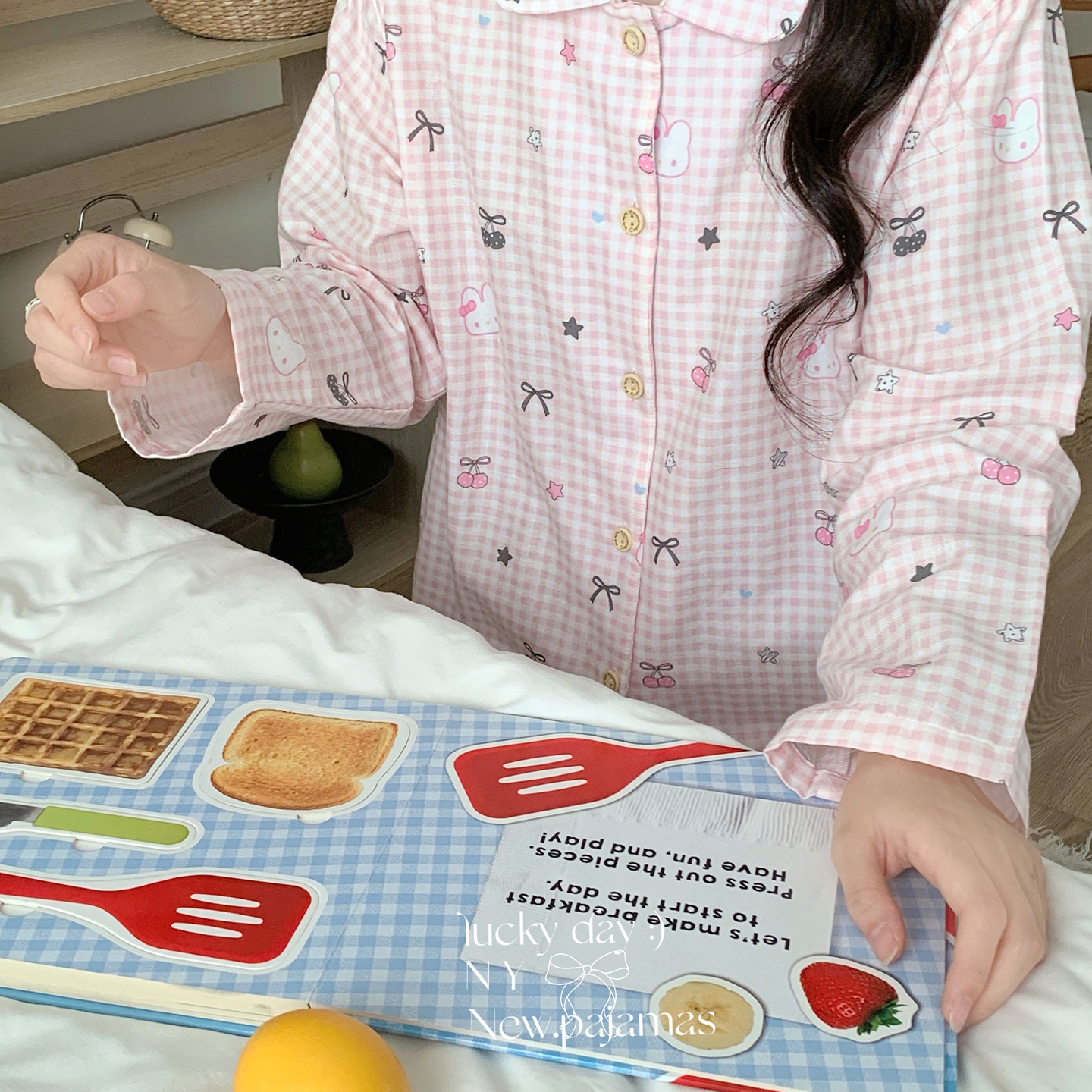 纽约生活 2025新款有氧纱小翻领长长(会员-5) 粉格乖乖兔