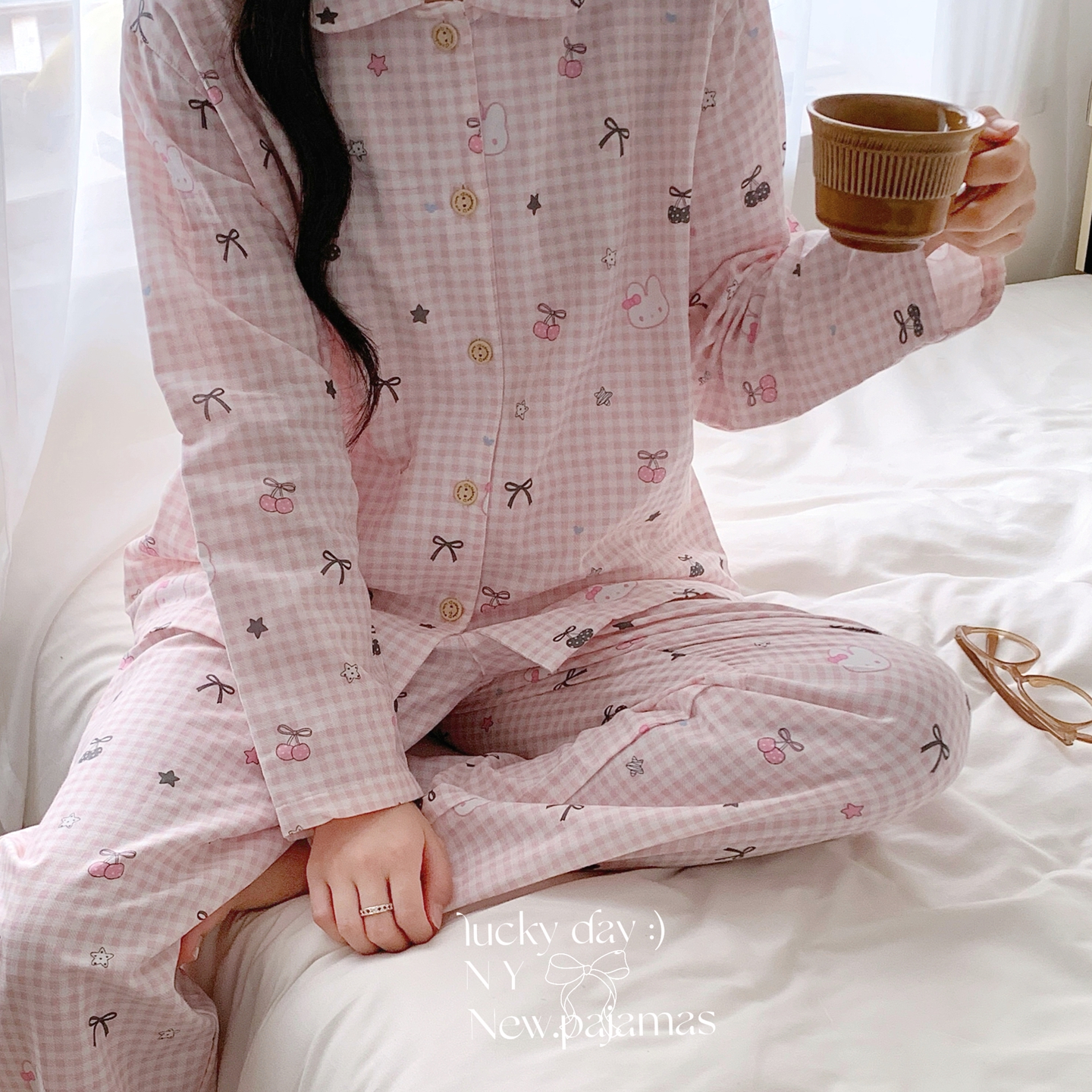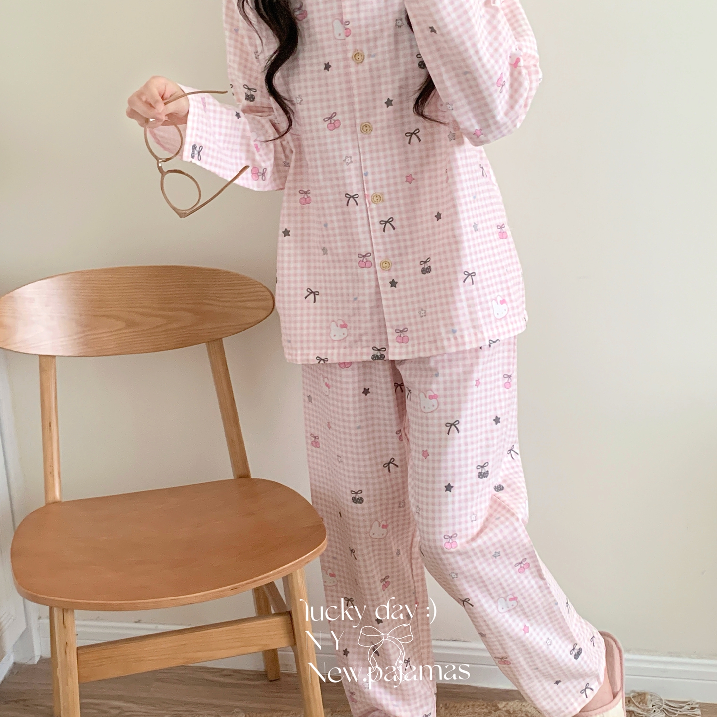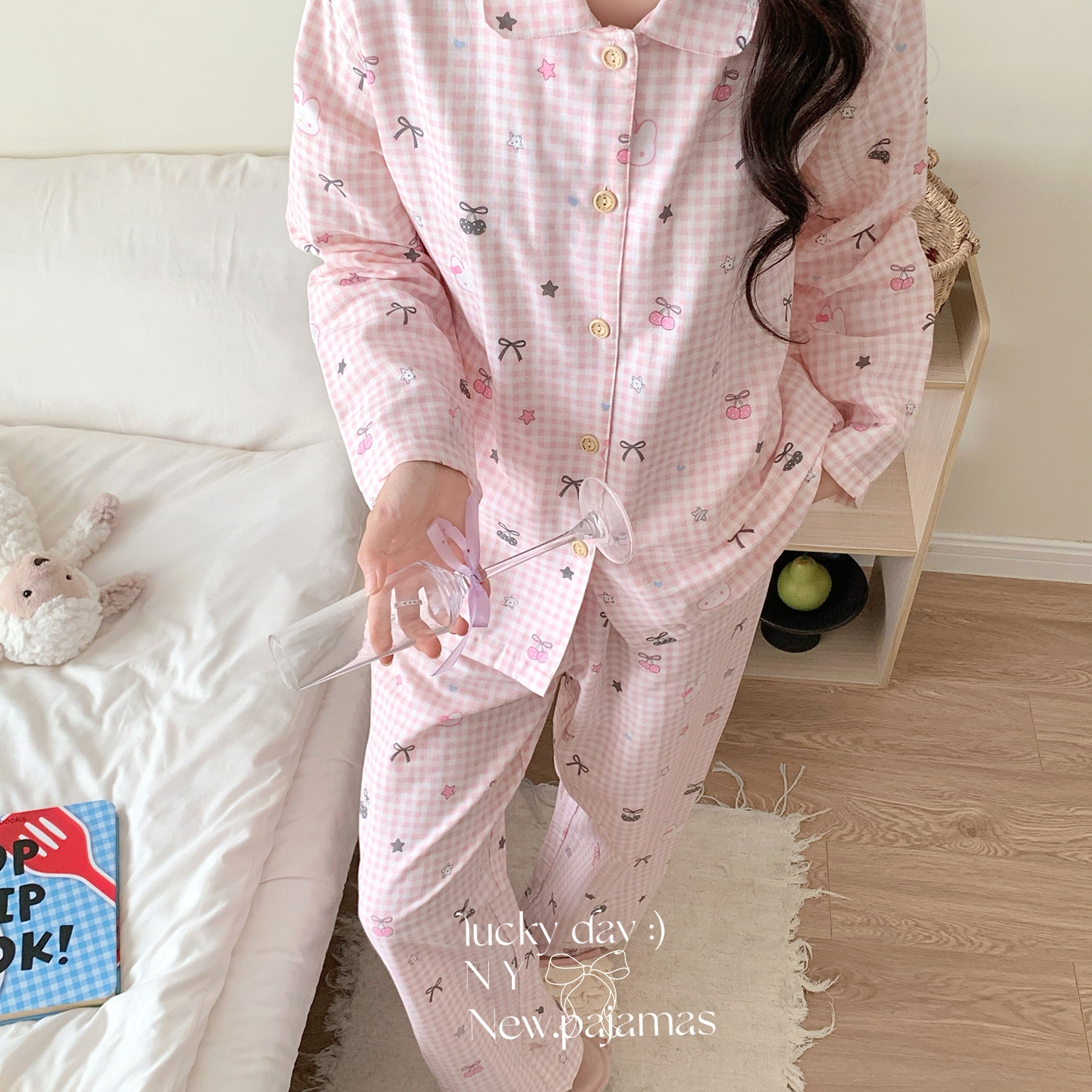 (总)纽约生活 2025新款绉布圆领开扣长袖长裤(会员-5),波比熊,黑碎花猫咪,蝴蝶结粉熊,花花狗,蓝碎花,塞纳花房