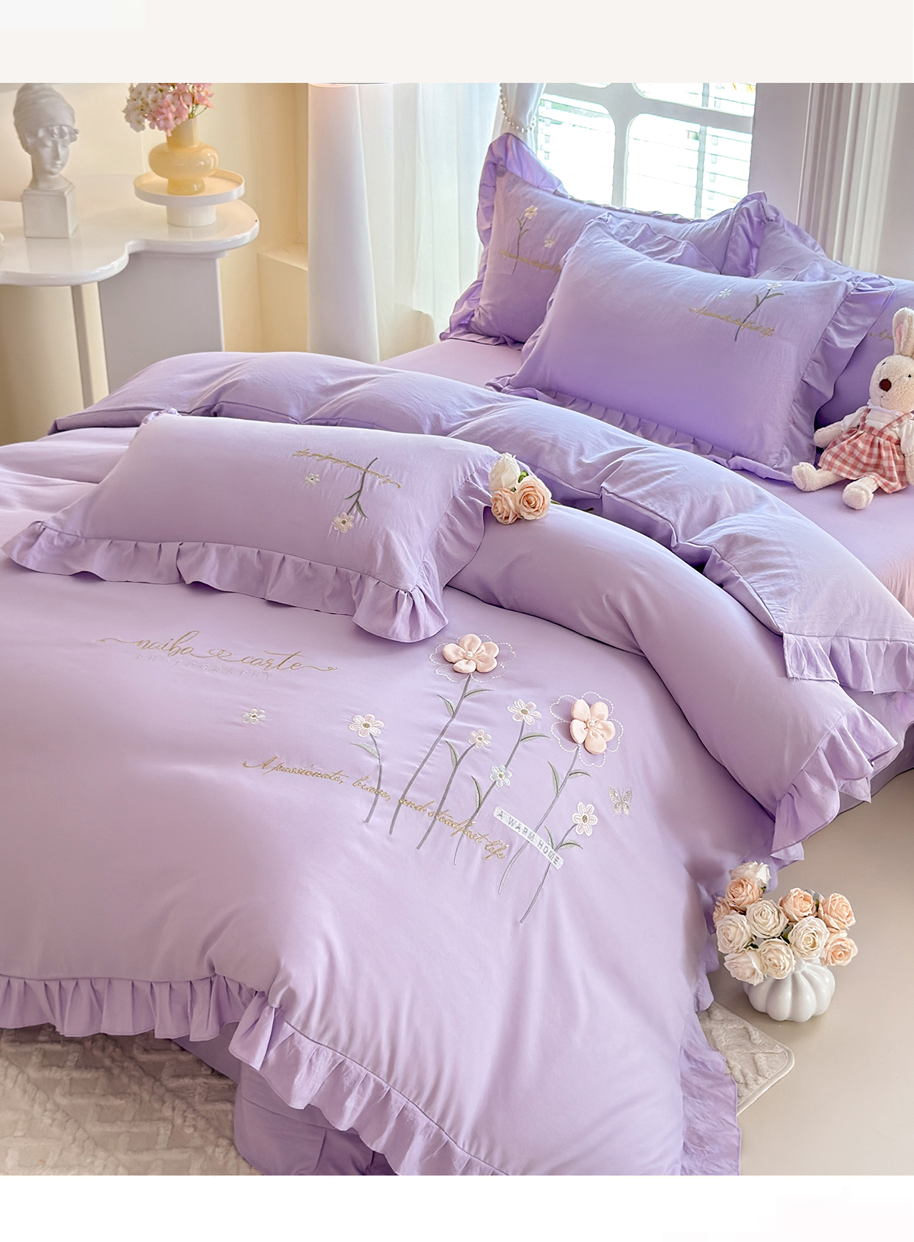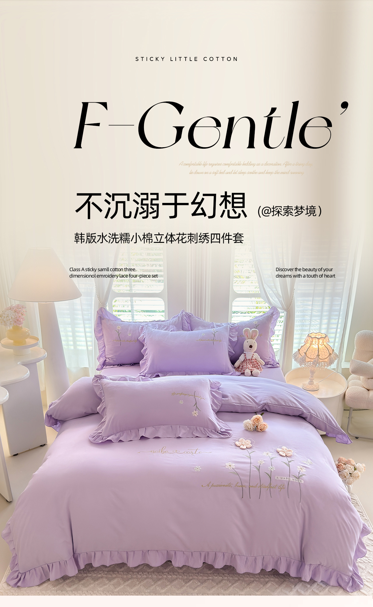 当前位置: 91家纺网 > 商品网购 > 床品套件 > 四件套 > 其它四件套 > 大麦乐田 2025新款韩版水洗糯小棉立体花刺绣四件套 花田间-桔