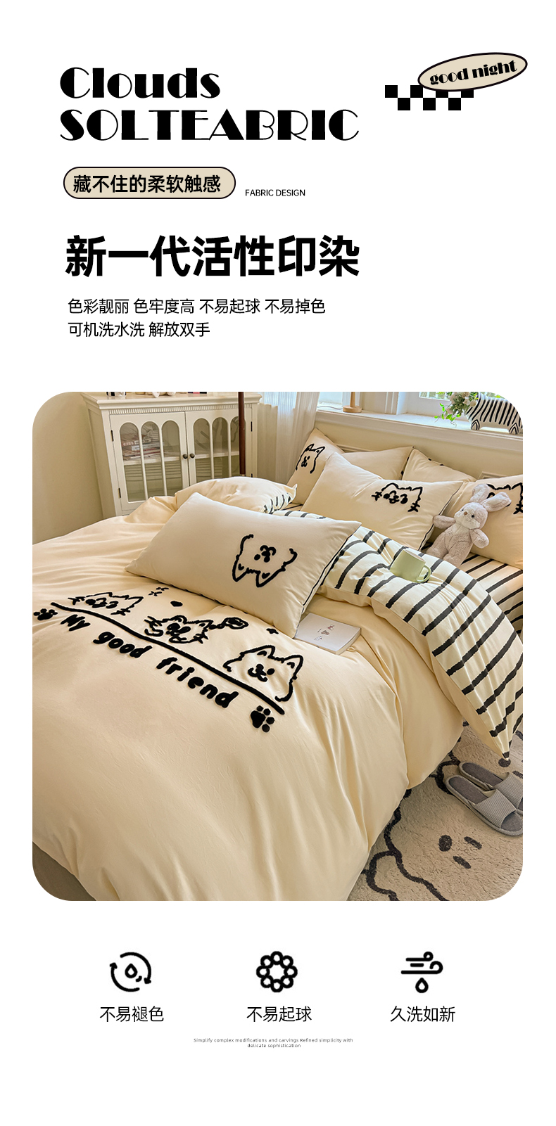 当前位置: 91家纺网 > 商品网购 > 床品套件 > 四件套 > 全棉普通四件套 > 多乐家纺 2025新款全棉纯棉磨毛毛巾绣四件套 好朋友
