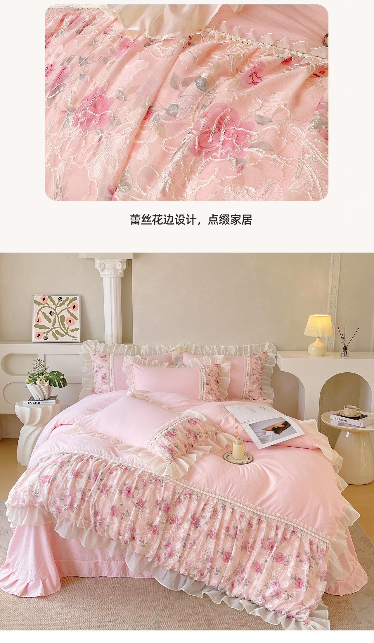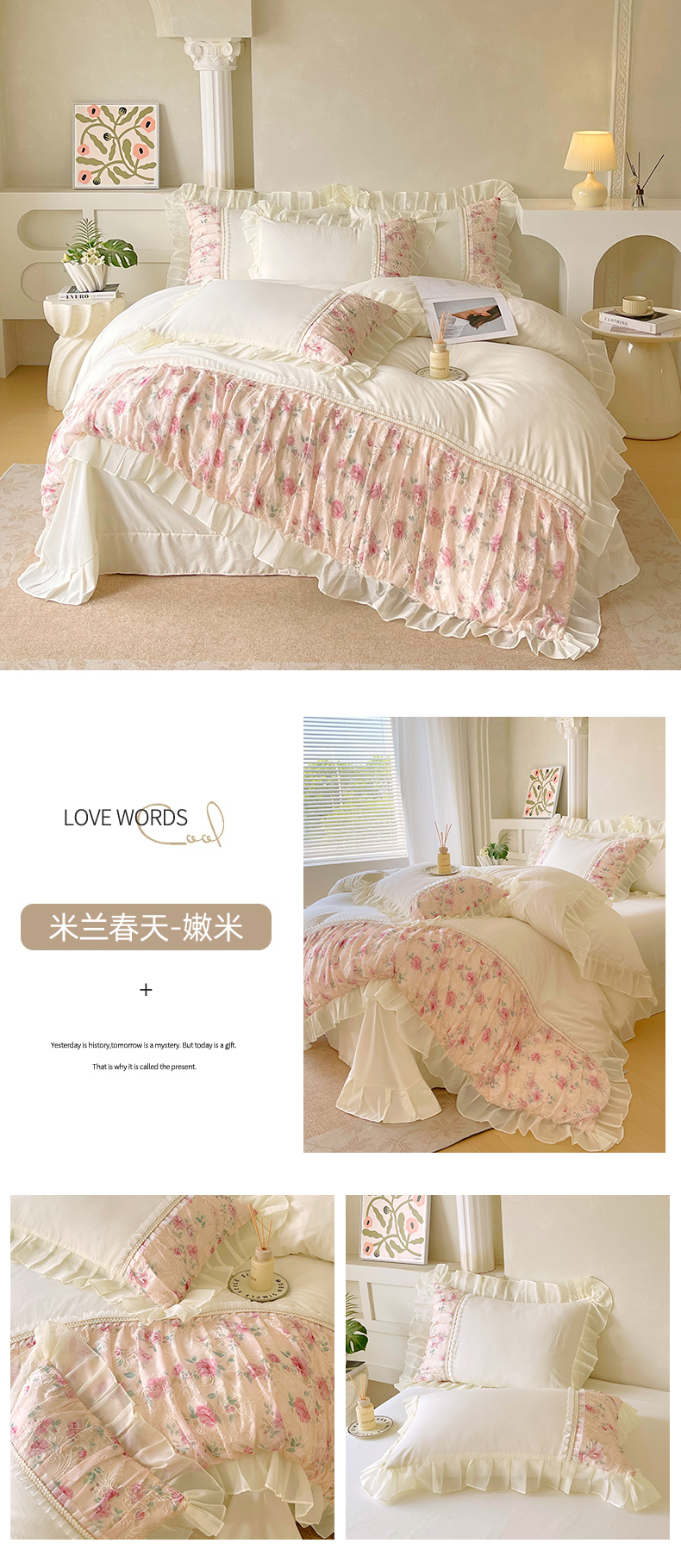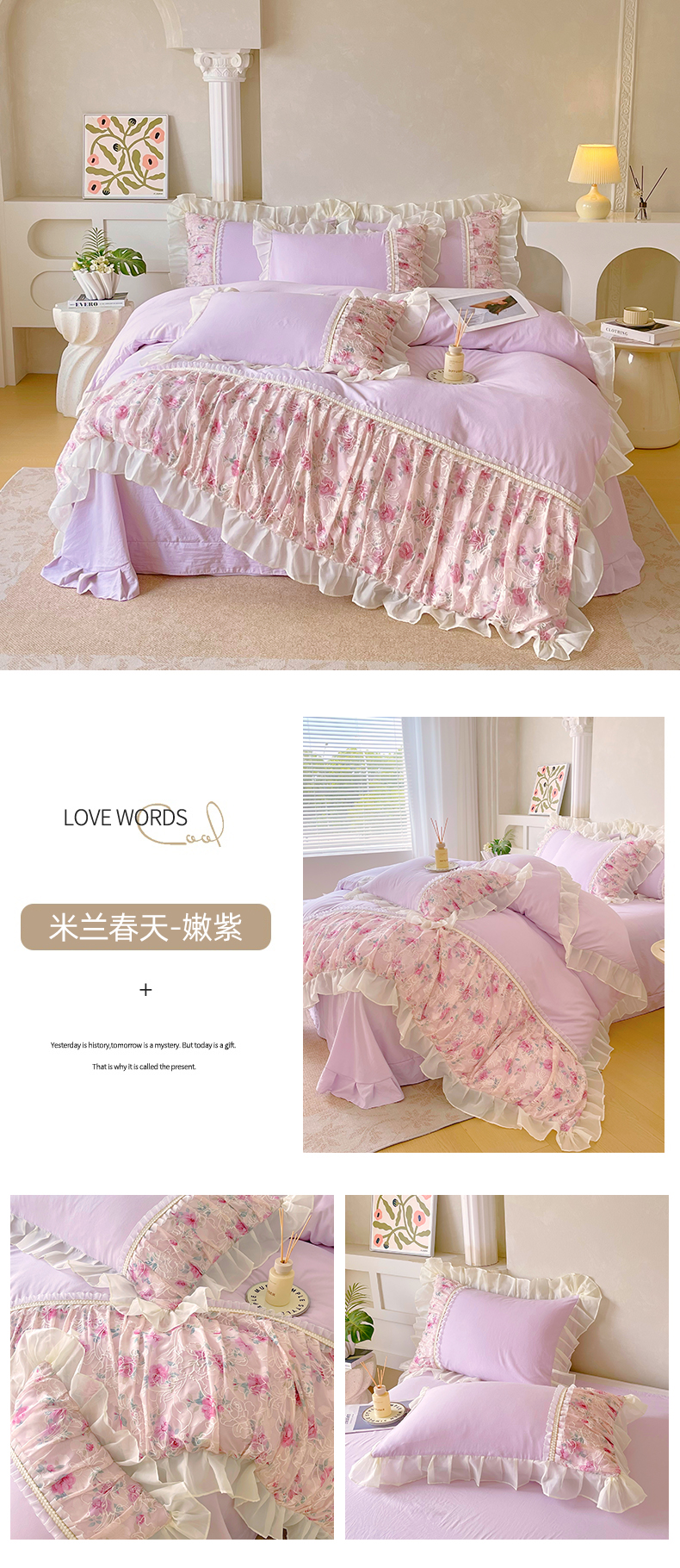 当前位置: 91家纺网 > 商品网购 > 床品套件 > 四件套 > 其它四件套 > 大麦乐田 2025新款法式少女心水洗糯小棉公主风蕾丝花边四件套 米兰春天-浅兰