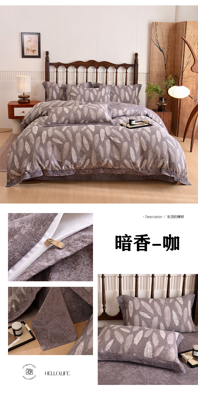商品名称:乐居家纺 2025新款高密亲肤亚麻舒爽透气四件套 莫妮卡-棕