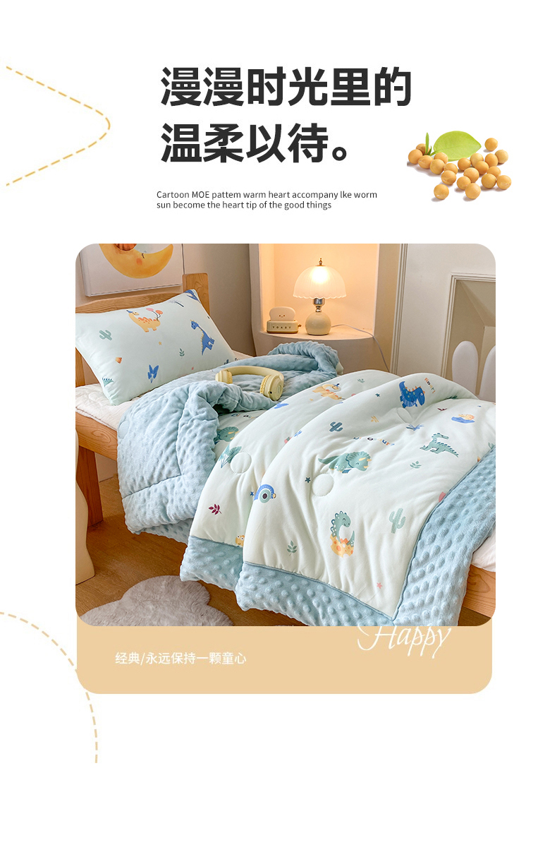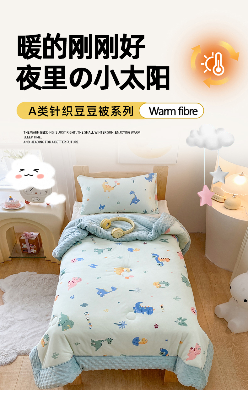 天瑜家纺 2025新款针织棉手包豆豆被儿童被大豆被被子被芯 手包边 恐龙乐园绿