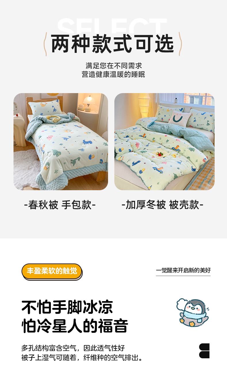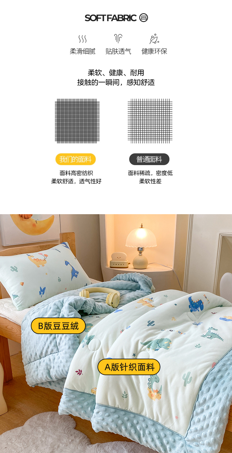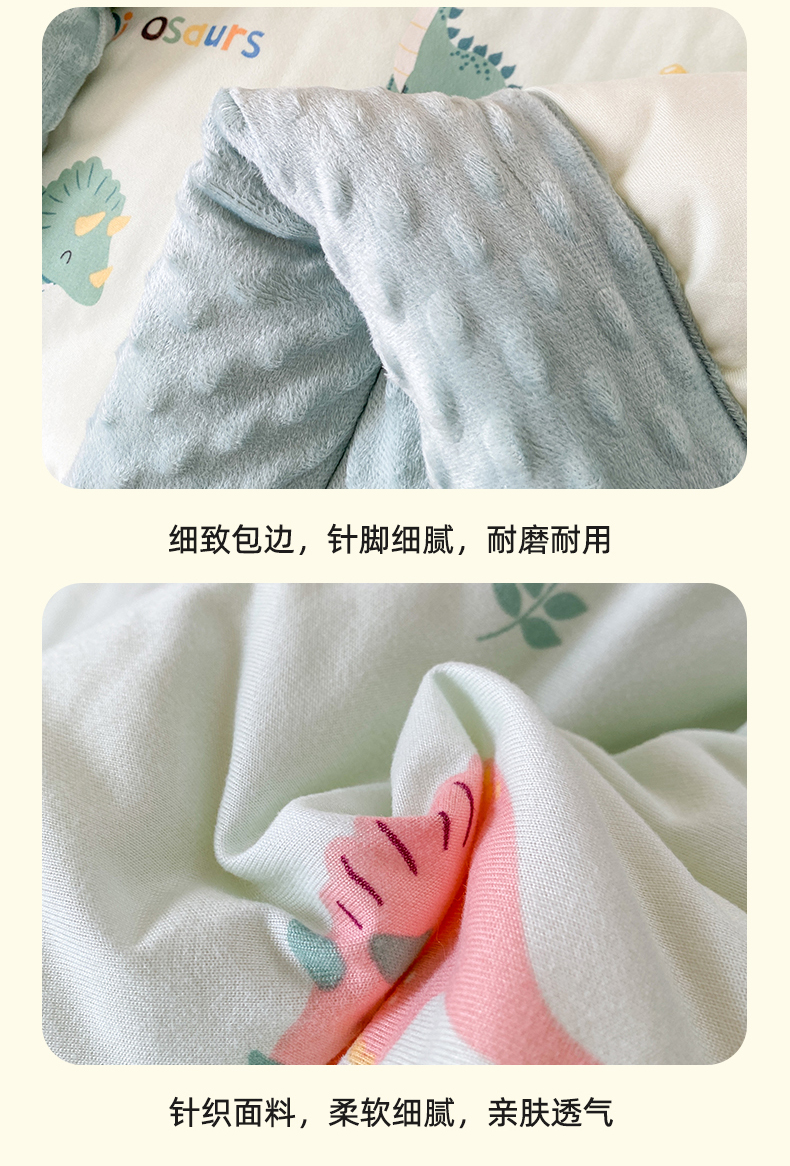 当前位置: 91家纺网 > 商品网购 > 被子 > 棉被 > 天瑜家纺 2025新款针织棉手包豆豆被儿童被大豆被被子被芯 手包边 恐龙乐园绿