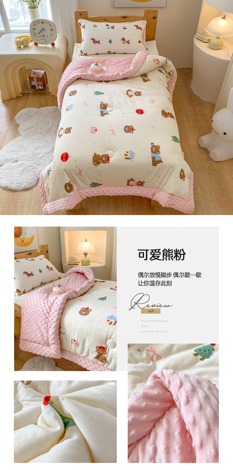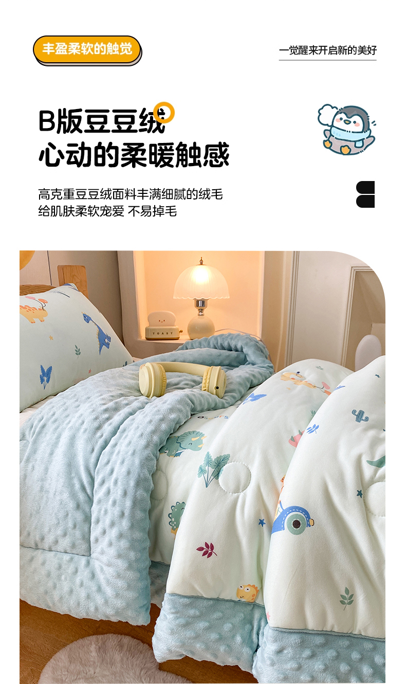 (总)天瑜家纺205新款A类针织面料手包豆豆绒冬被大豆被,动物乐园绿,花朵小熊粉,恐龙宝贝兰,狮子王黄,小草莓熊,幸运狗粉
