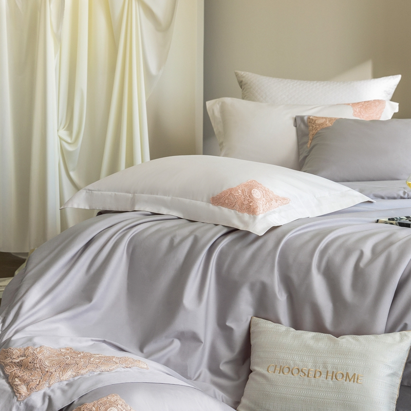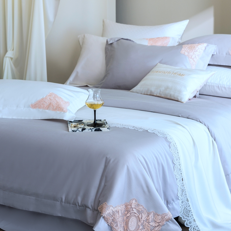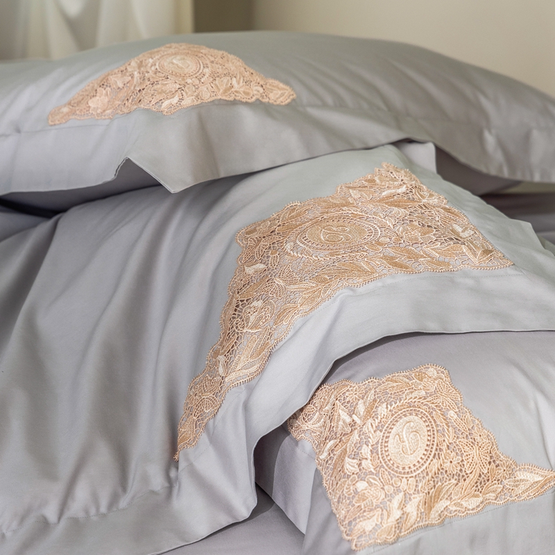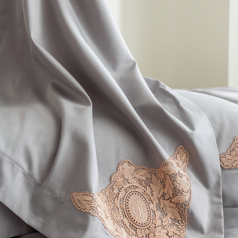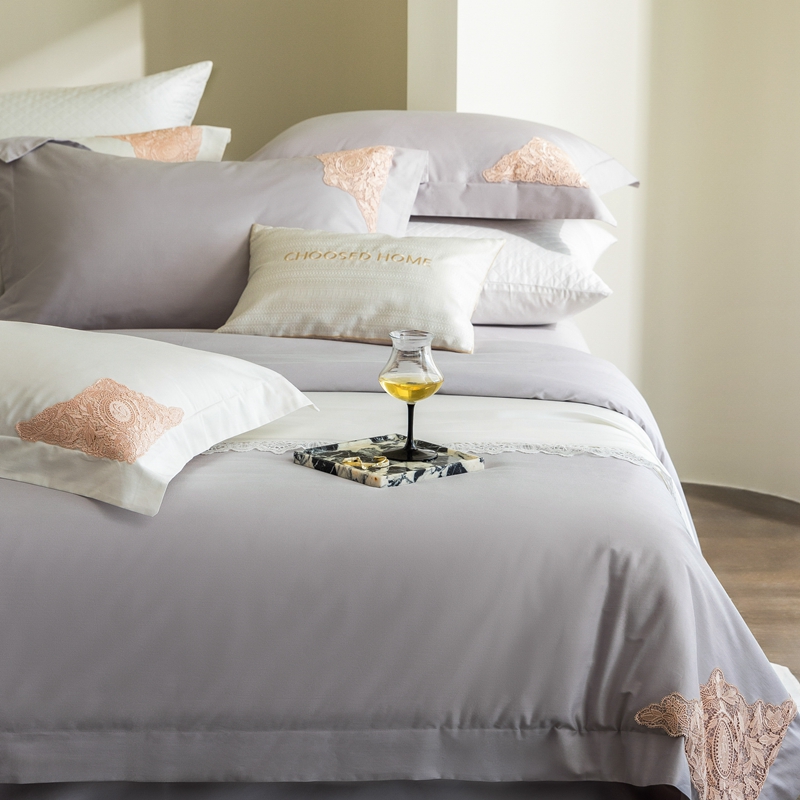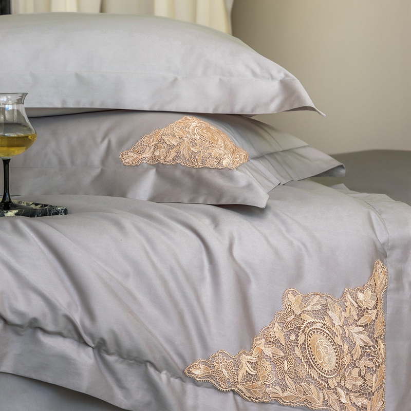 商品名称:初拾 2025新款100s全棉“精致”蕾丝花边四件套—嘉柏丽尔 嘉柏丽尔-气质灰