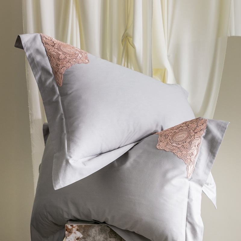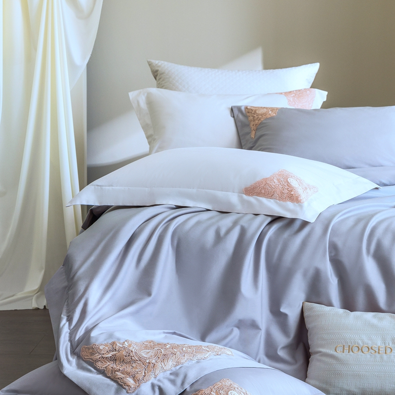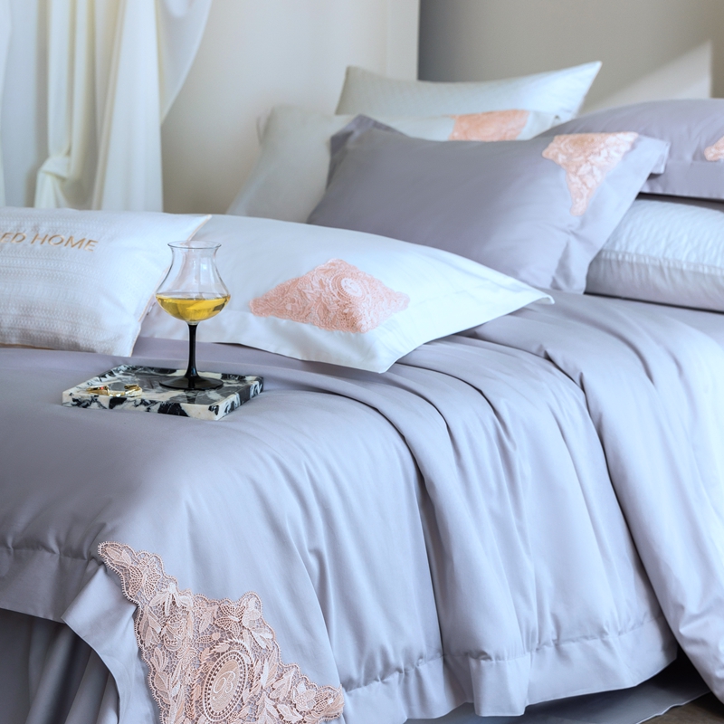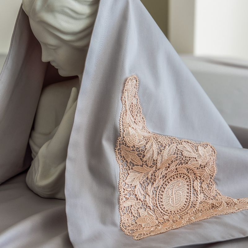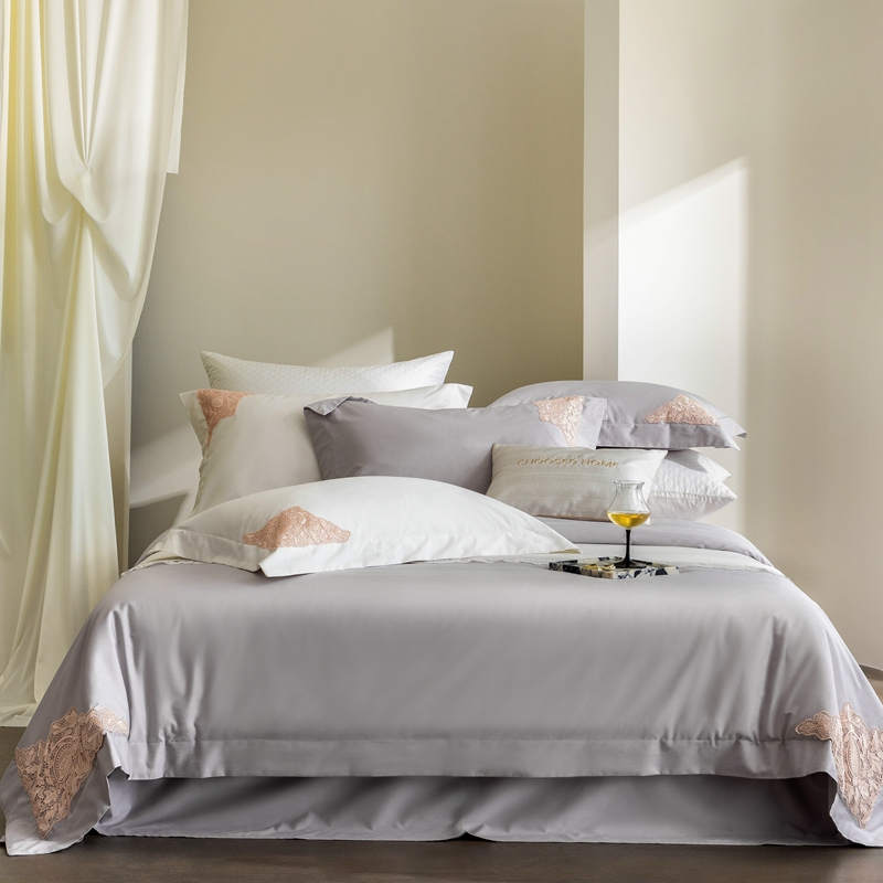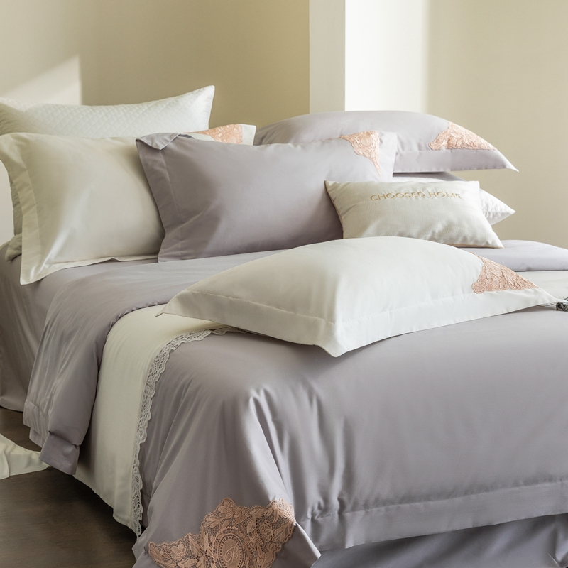商品名称:初拾 2025新款100s全棉“精致”蕾丝花边四件套—嘉柏丽尔 嘉柏丽尔-气质灰