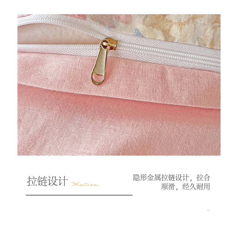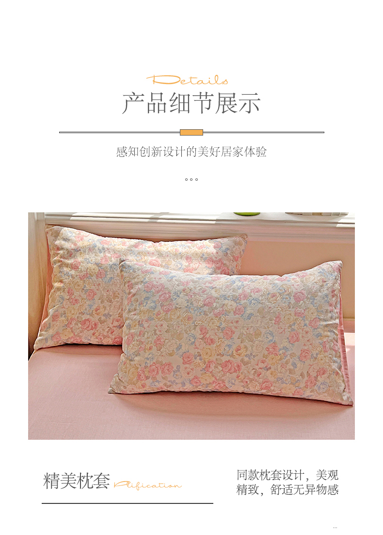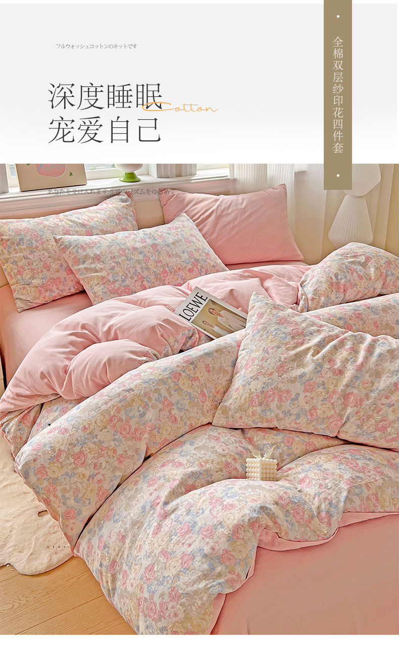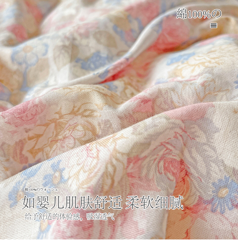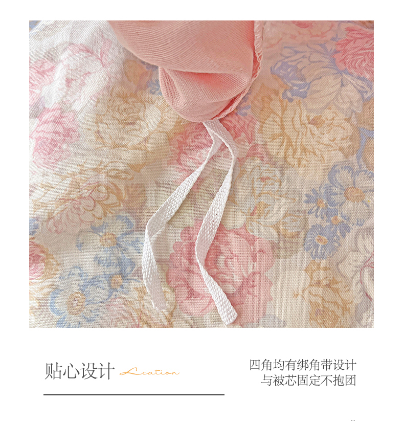 商品名称:小懒猪 2025新款全棉有氧有氧双层纱清新印花四件套 富贵满园