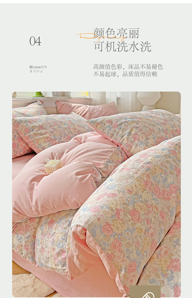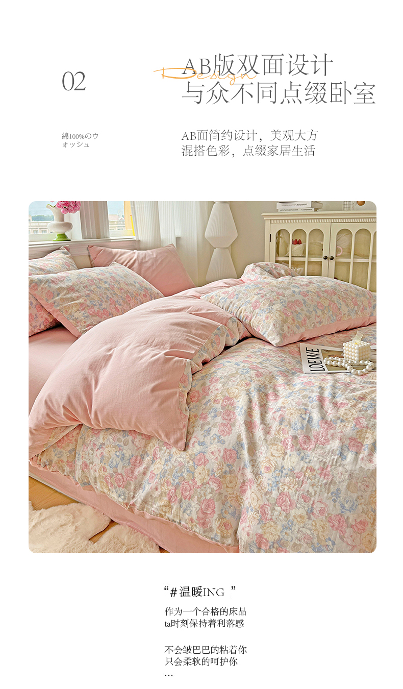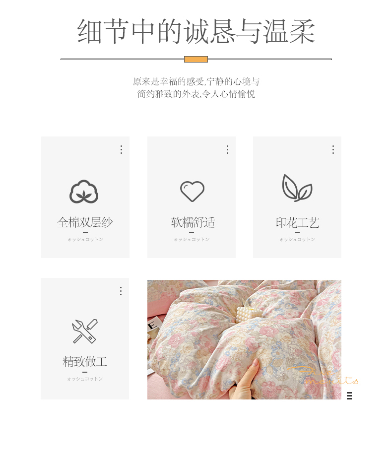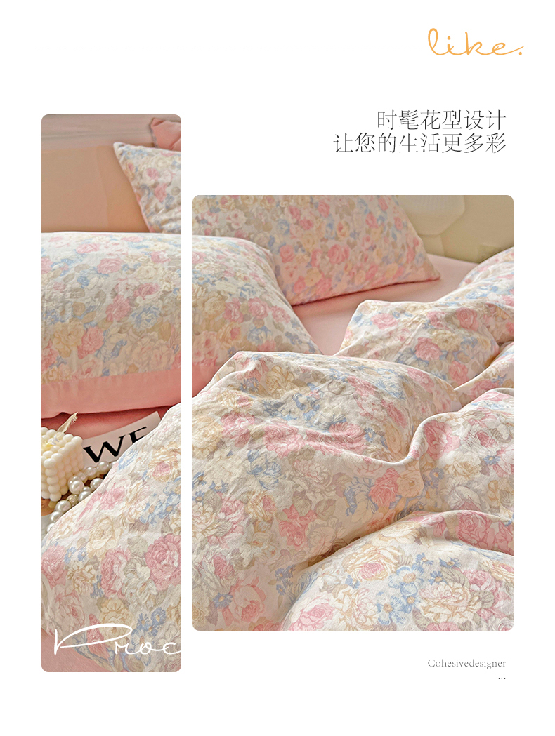 商品名称:小懒猪 2025新款全棉有氧有氧双层纱清新印花四件套 富贵满园