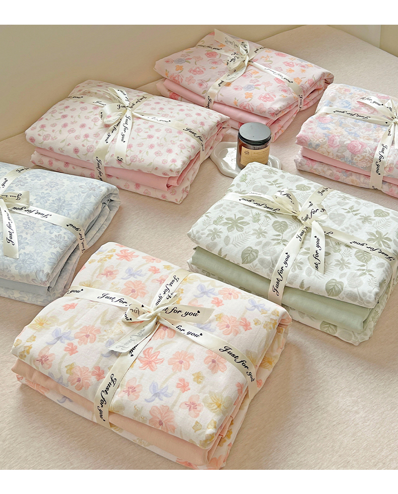 小懒猪 2025新款全棉有氧有氧双层纱清新印花四件套 富贵满园