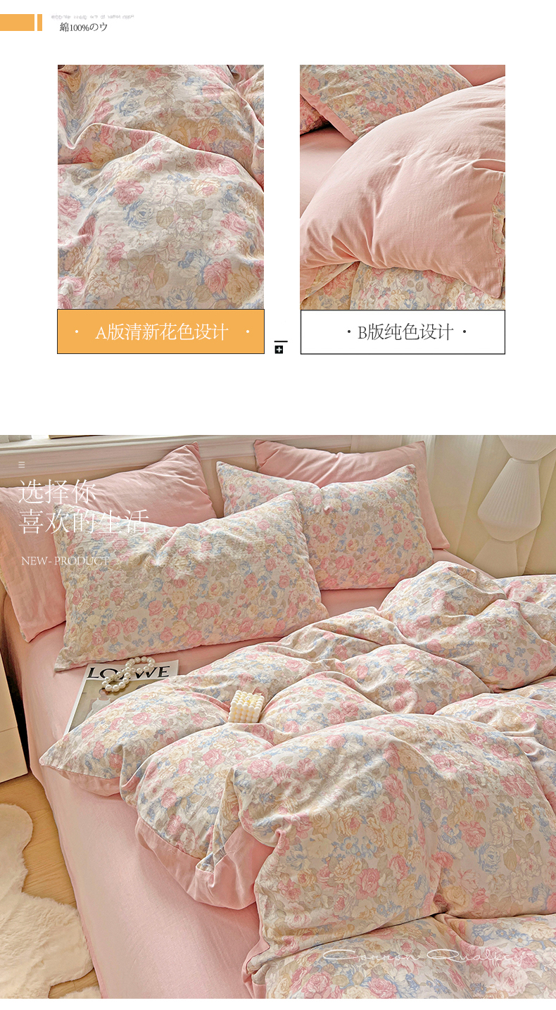 (总)小懒猪 2026春夏新款全棉纯棉花卉款四件套(提供买家秀),淡紫花屹,漫彩花韵,沐风苍兰,青蔓花盏,森屹兔眠,雾蓝花簇,紫粉花漾,柳色衫林