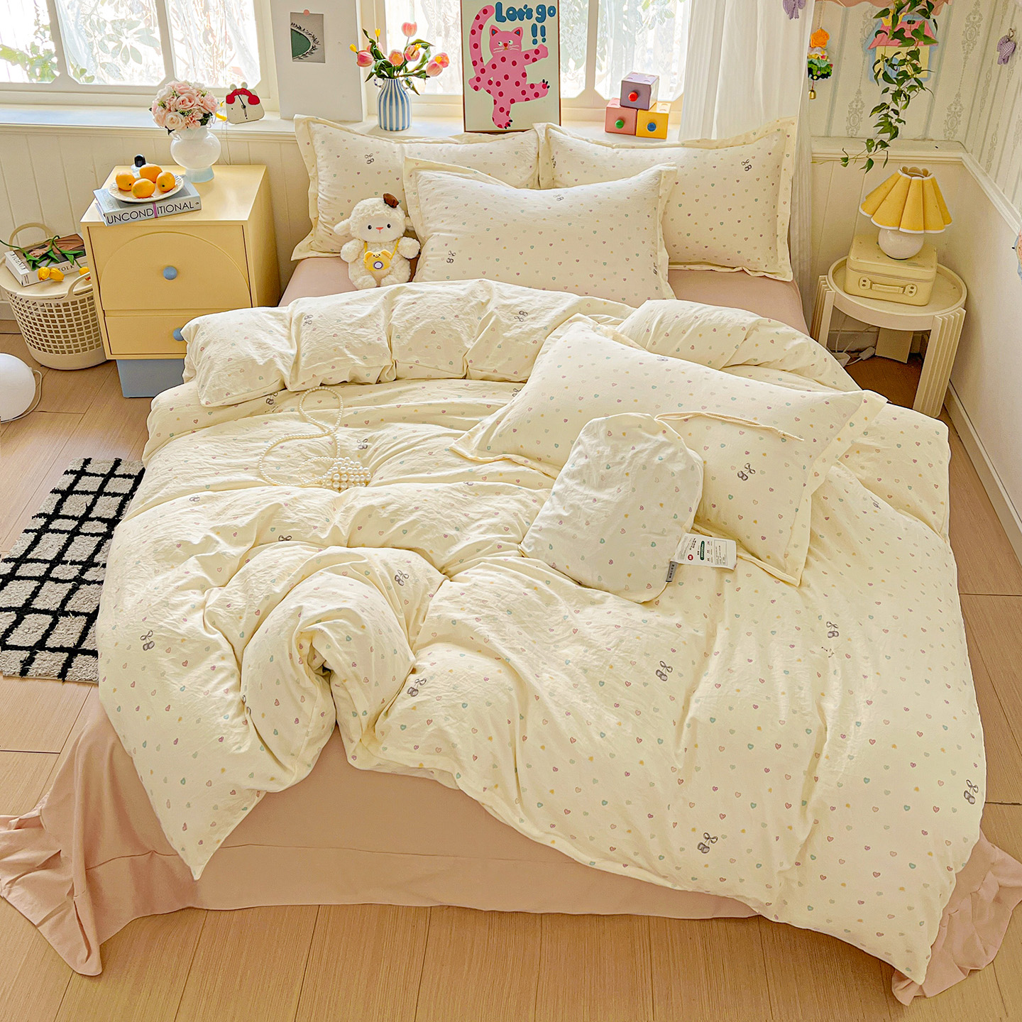 梦莱斯 2025新款韩国小布袋古法云感棉四件套 彩色爱心