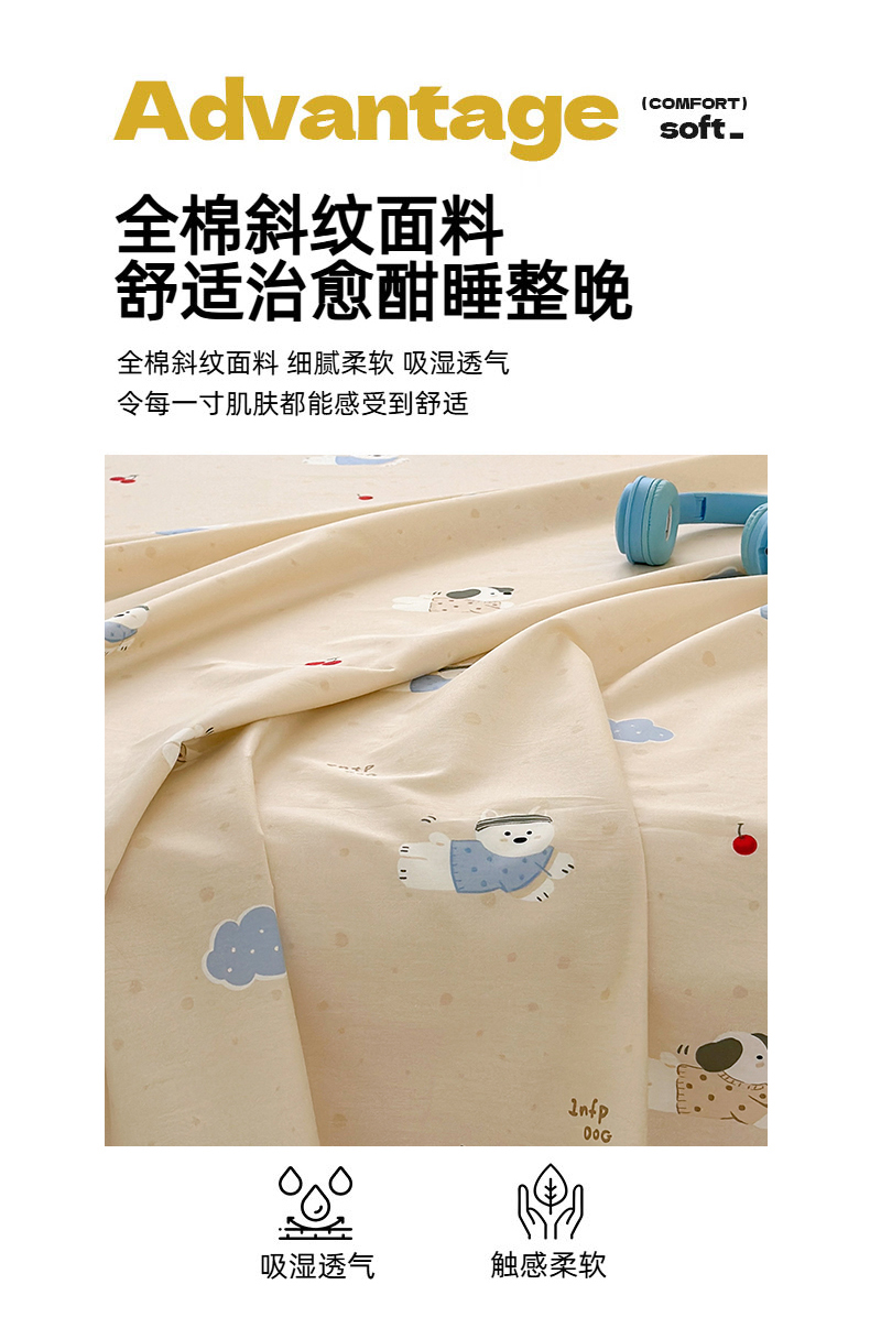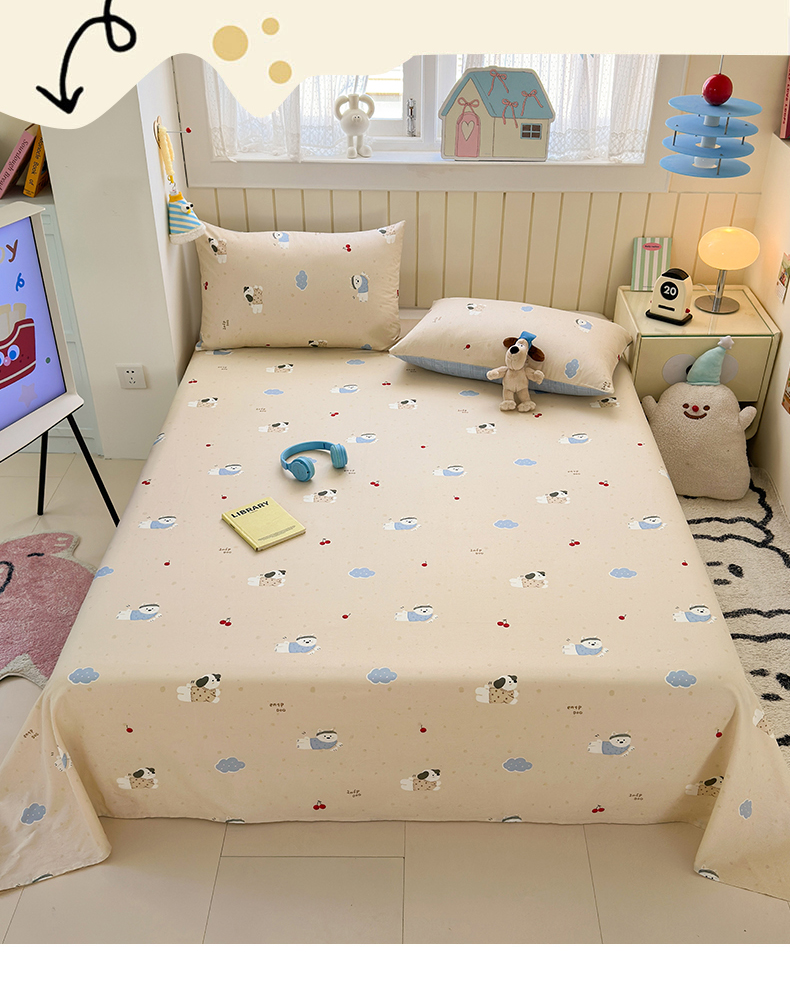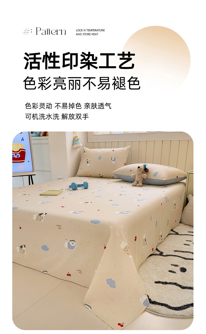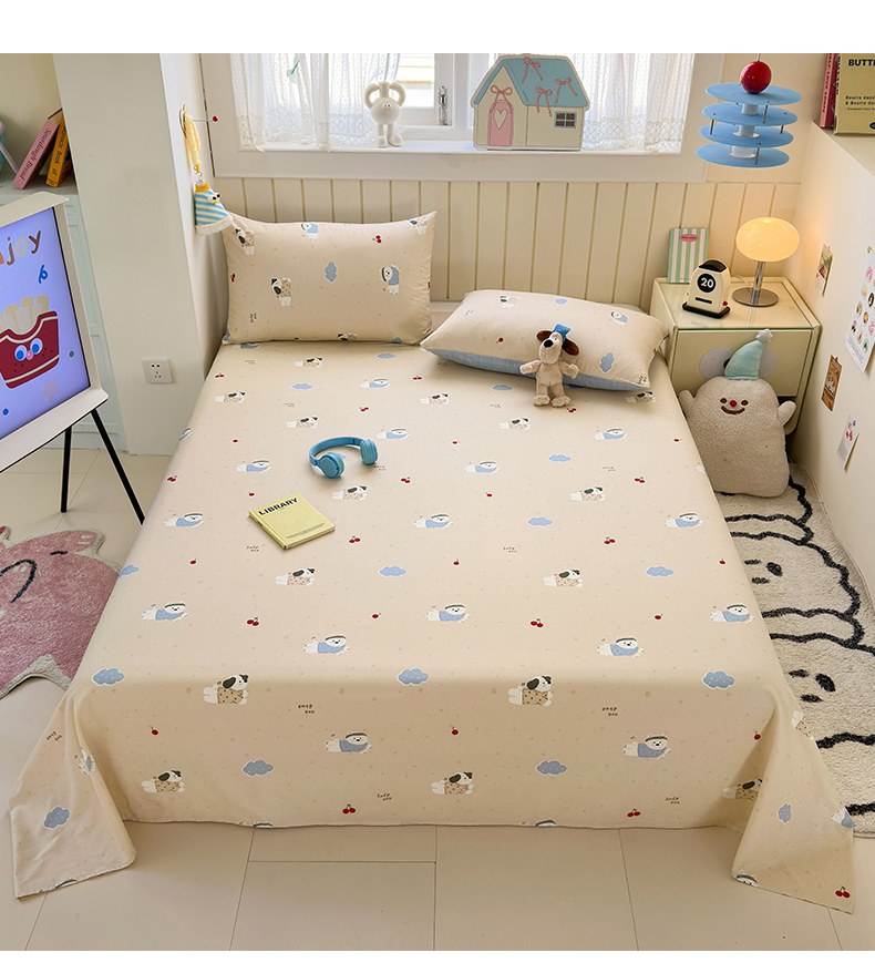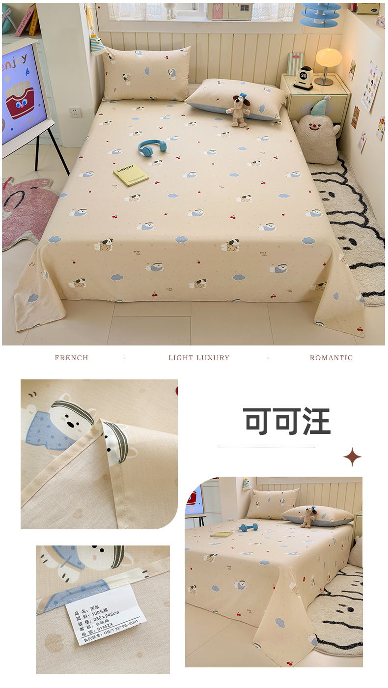 • 91家纺网 家纺一手货源 找家纺 曼之夏 2025新款全棉纯棉40支学生季卡通印花床单单床单床单单件 可可汪