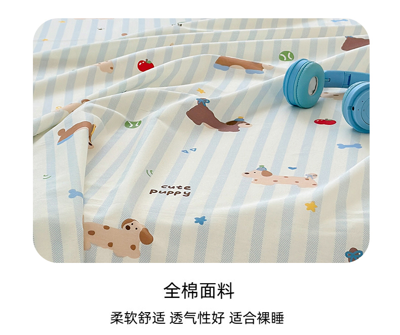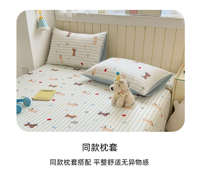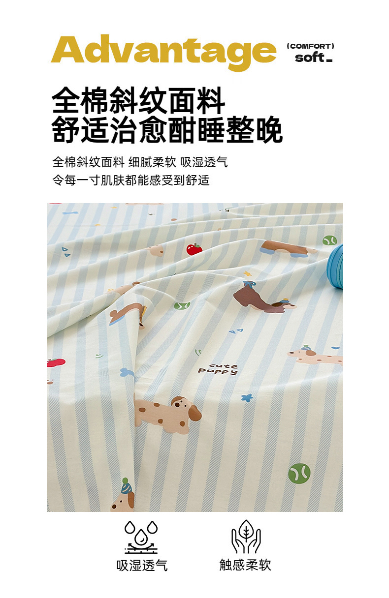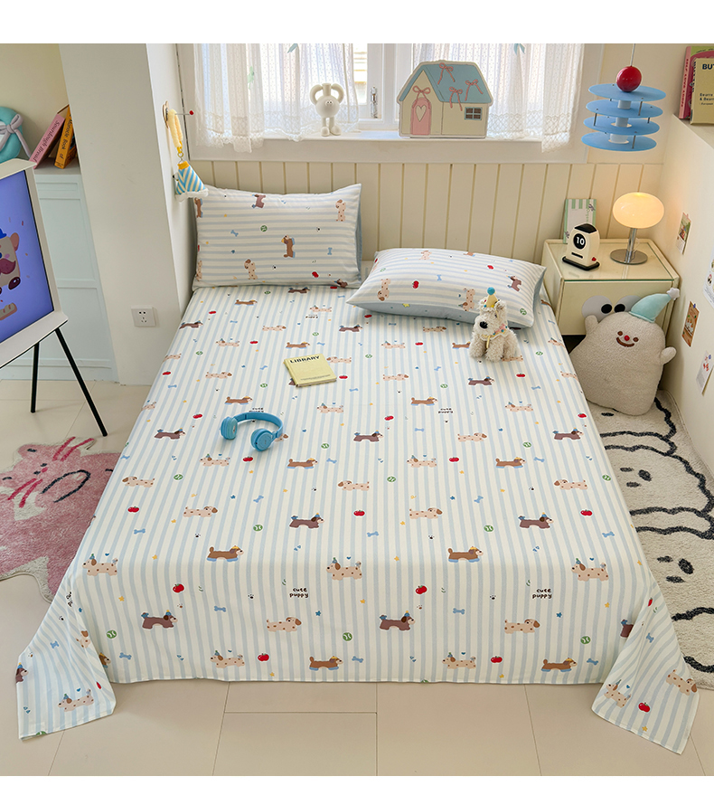 曼之夏 2025新款全棉纯棉40支学生季卡通印花床单单床单床单单件 椰蓝小腊肠