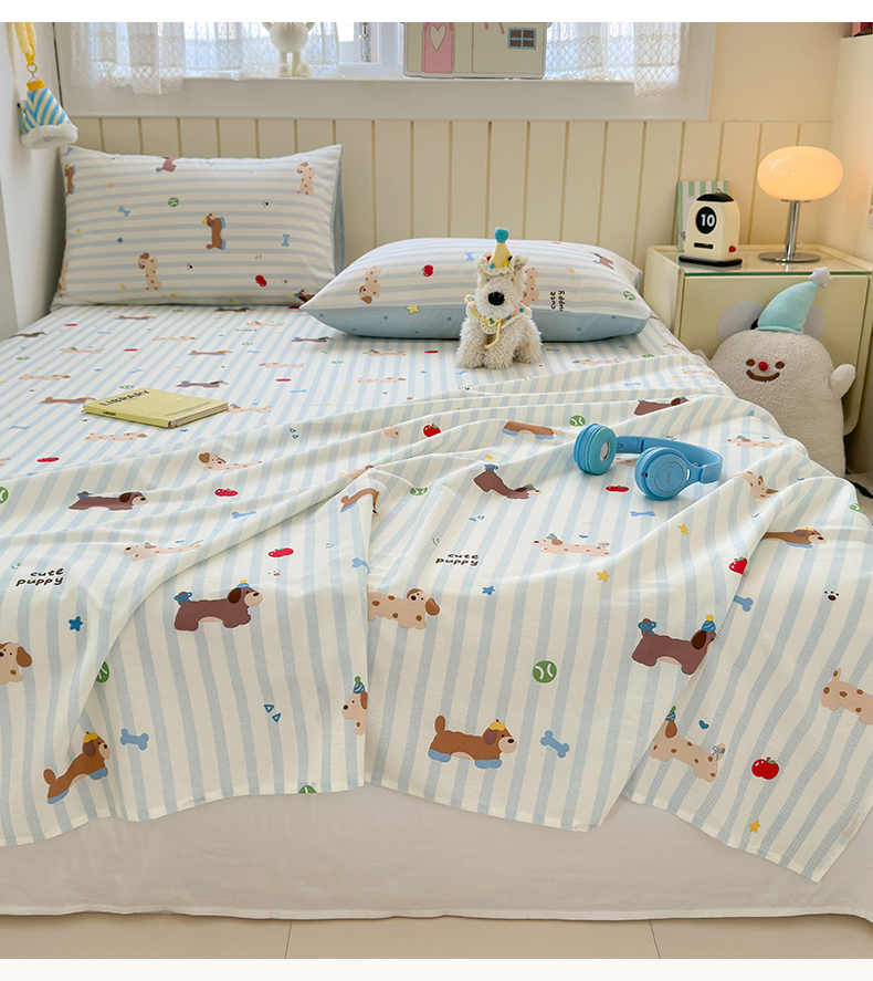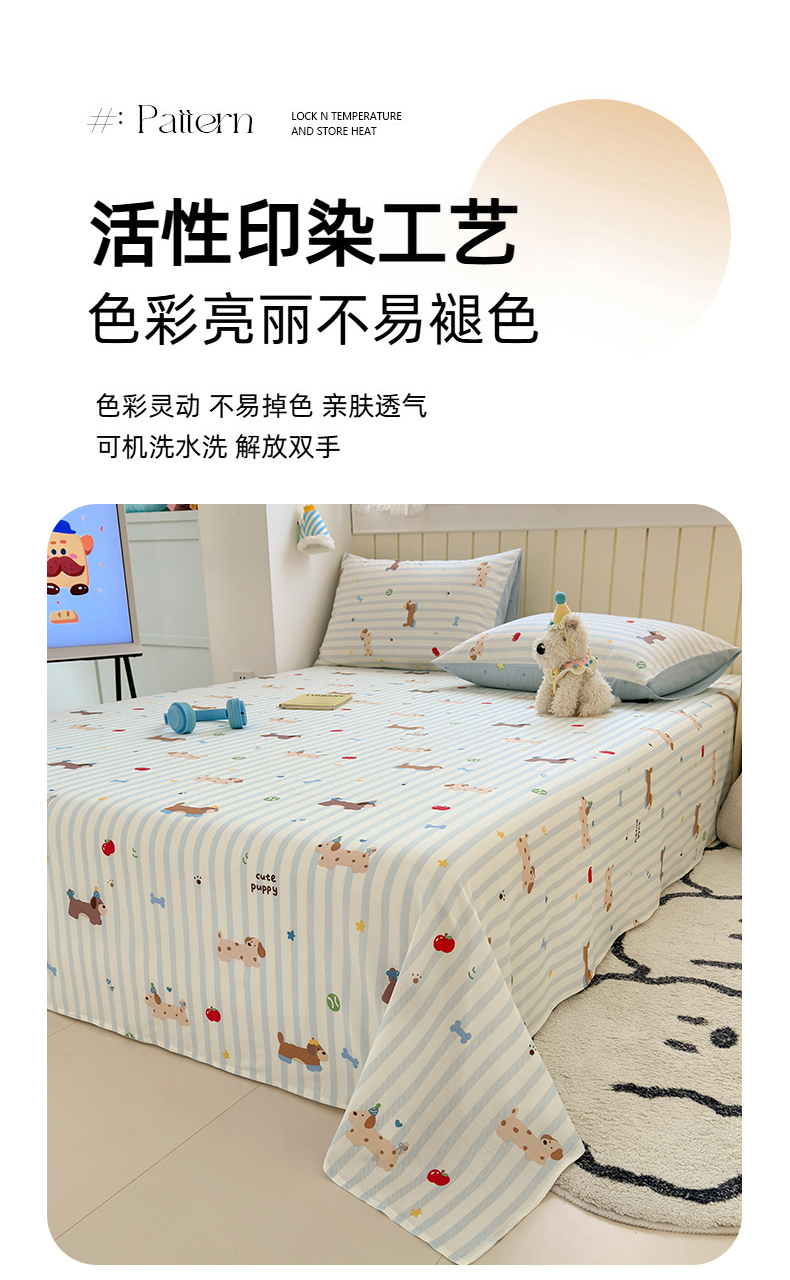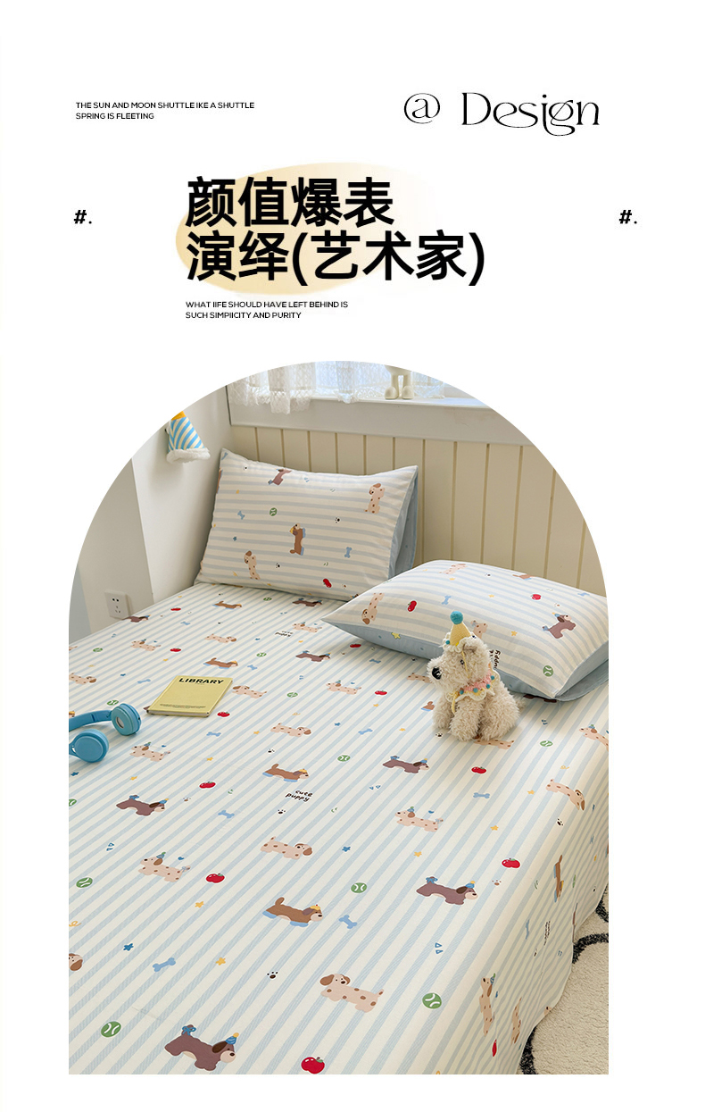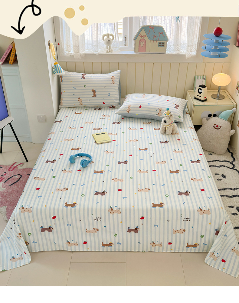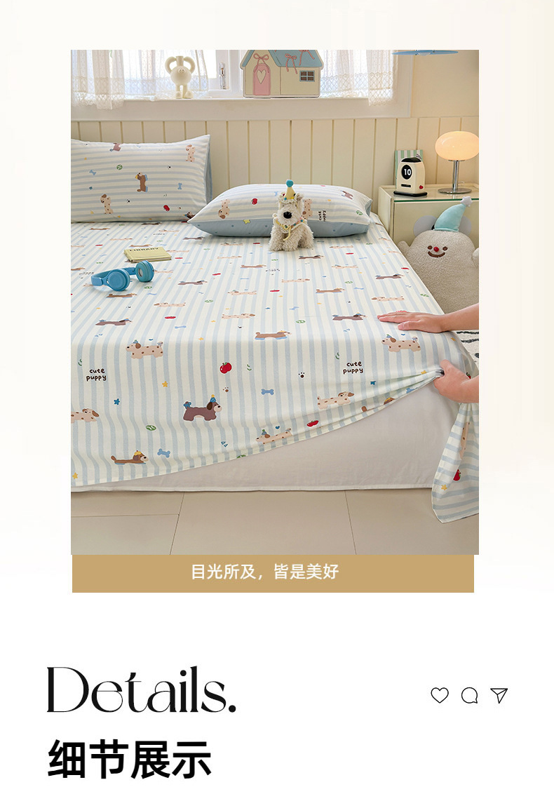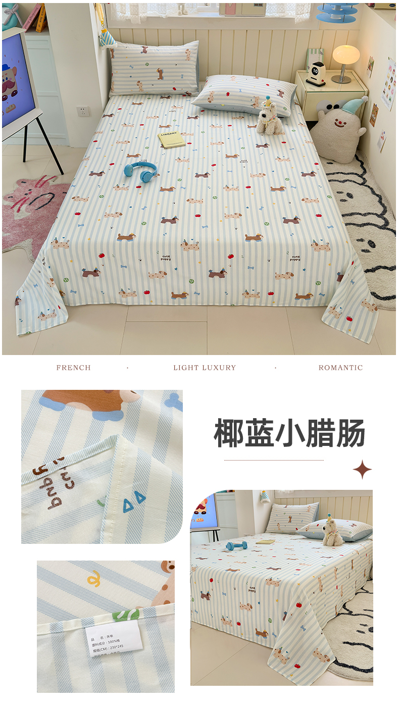 • 91家纺网 家纺一手货源 找家纺 曼之夏 2025新款全棉纯棉40支学生季卡通印花床单单床单床单单件 椰蓝小腊肠