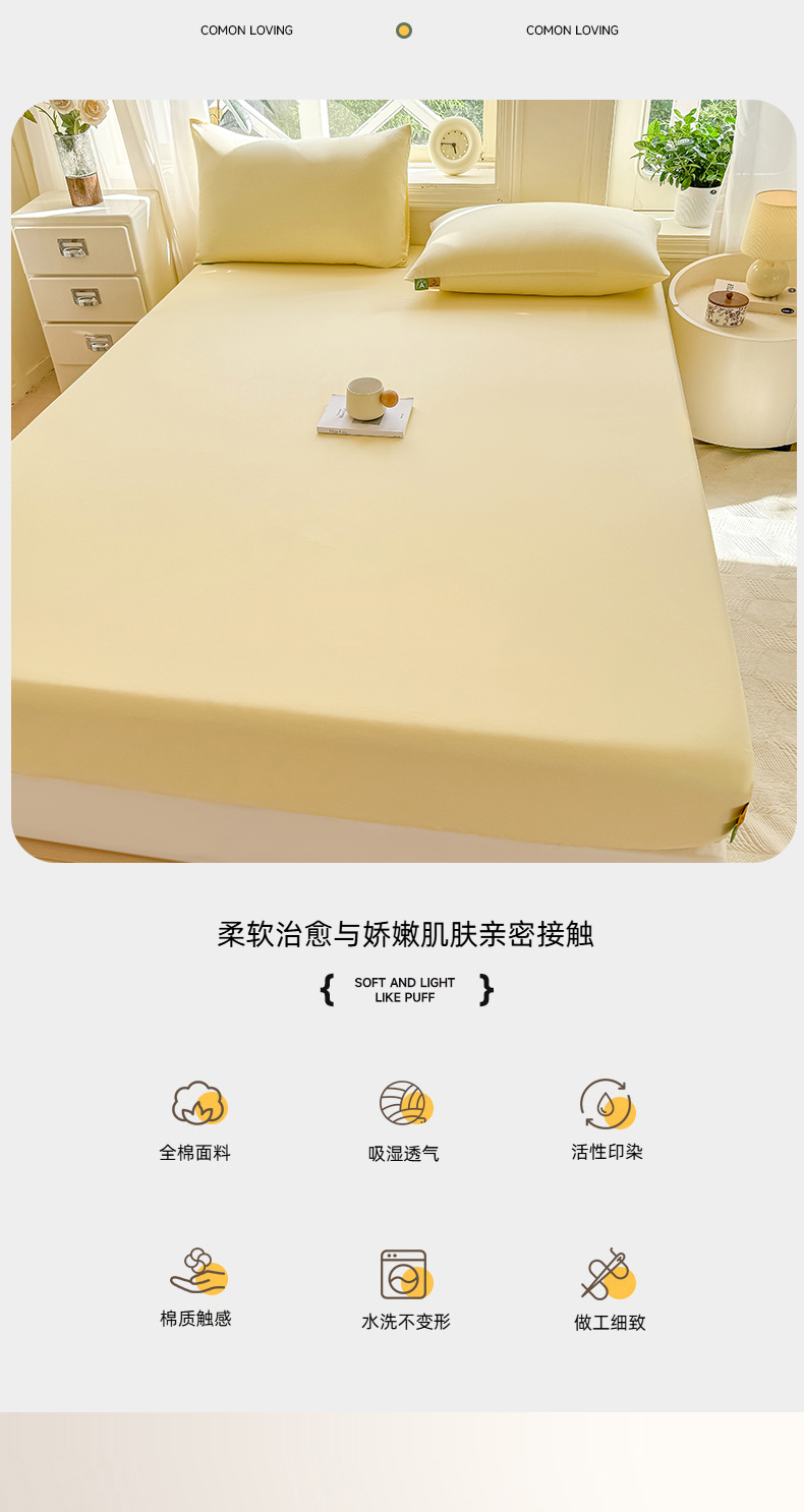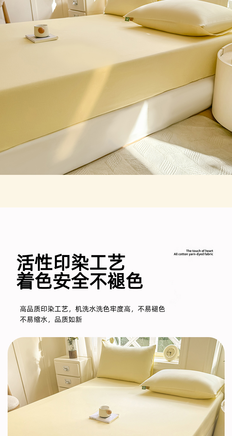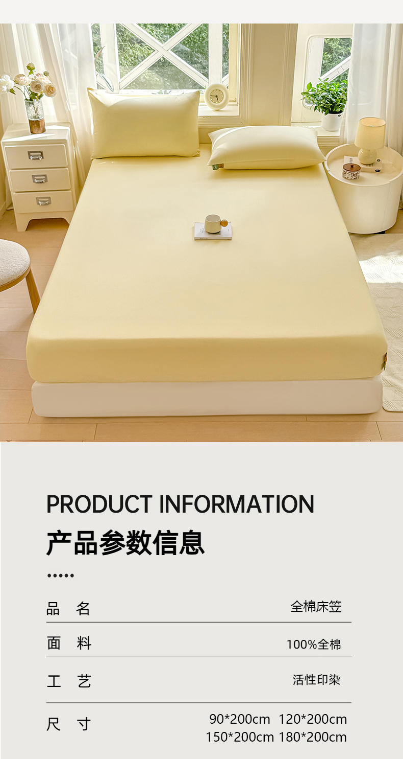 • 91家纺网 家纺一手货源 找家纺 凡客家居 2025新款全棉纯色简约床笠系列 茉莉黄