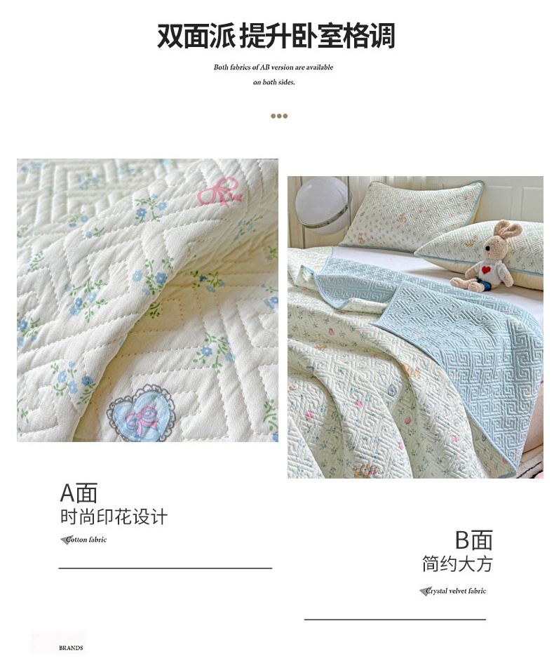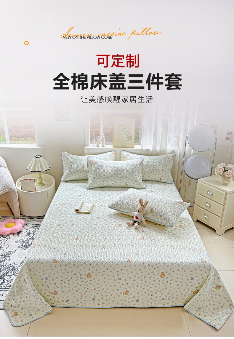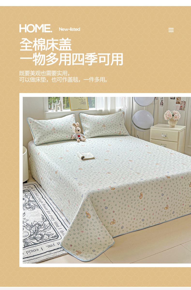 当前位置: 91家纺网 > 商品网购 > 床上用品 > 床盖 > 羽爱家纺 2025新款A类双面印花全棉水洗床盖套件-三件套 兔子乐园