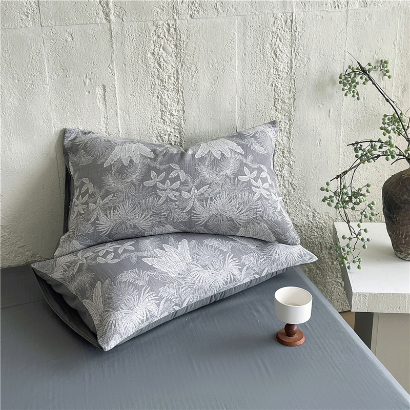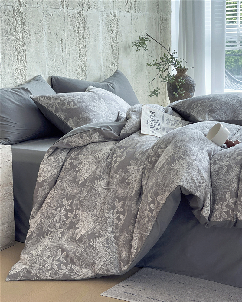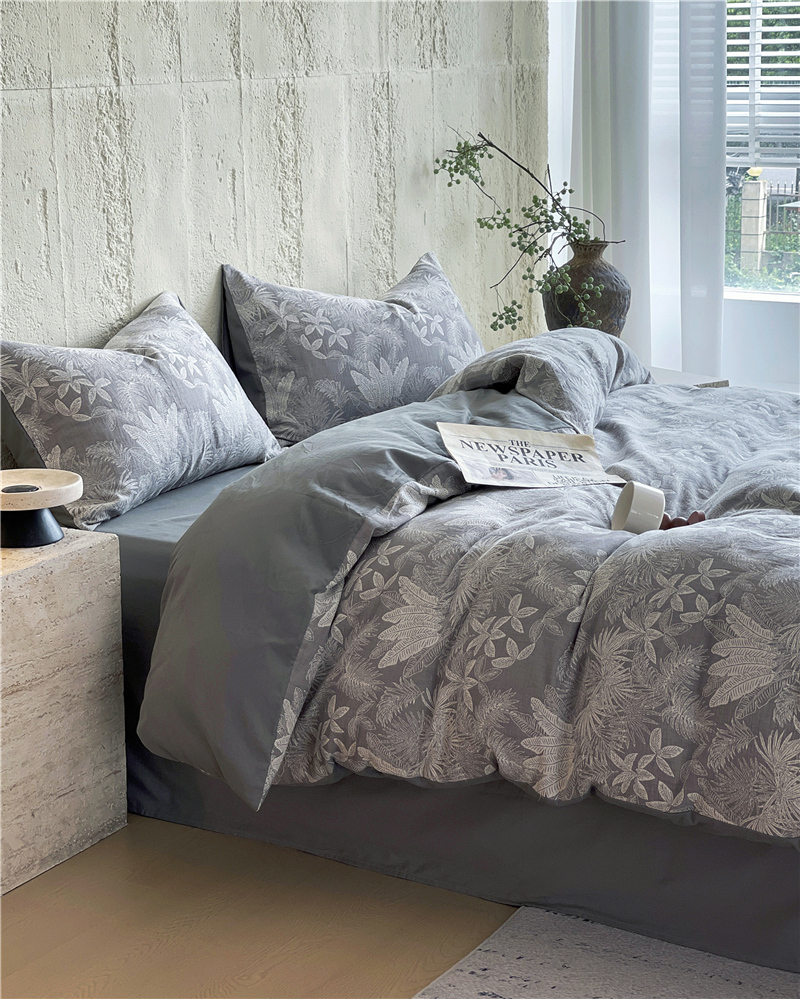 佰亿莱 2026新款棉麻双层纱四件套 云木林-灰