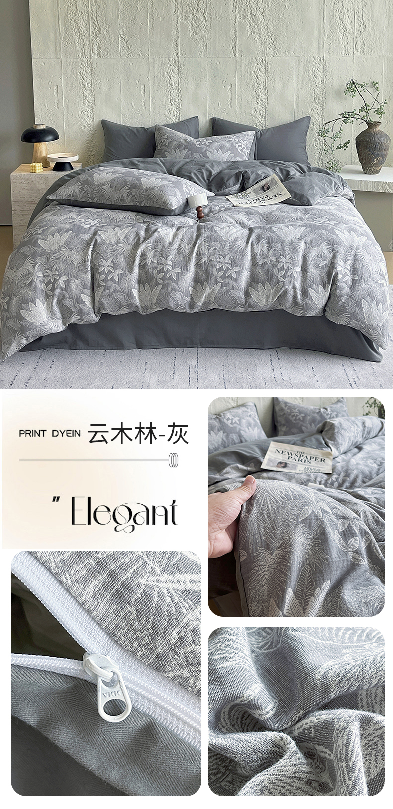 商品名称:佰亿莱 2026新款棉麻双层纱四件套 云木林-灰