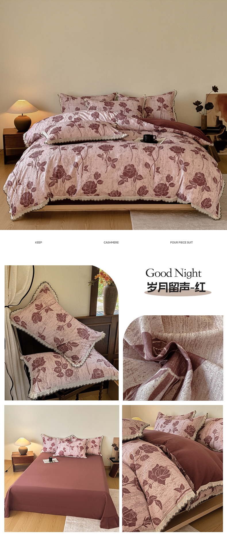当前位置: 91家纺网 > 商品网购 > 床品套件 > 四件套 > 磨毛活性四件套 > 舒慕家纺 2025新款全棉磨毛花边赫本风磨毛四件套(送高端包装) 岁月留声-红