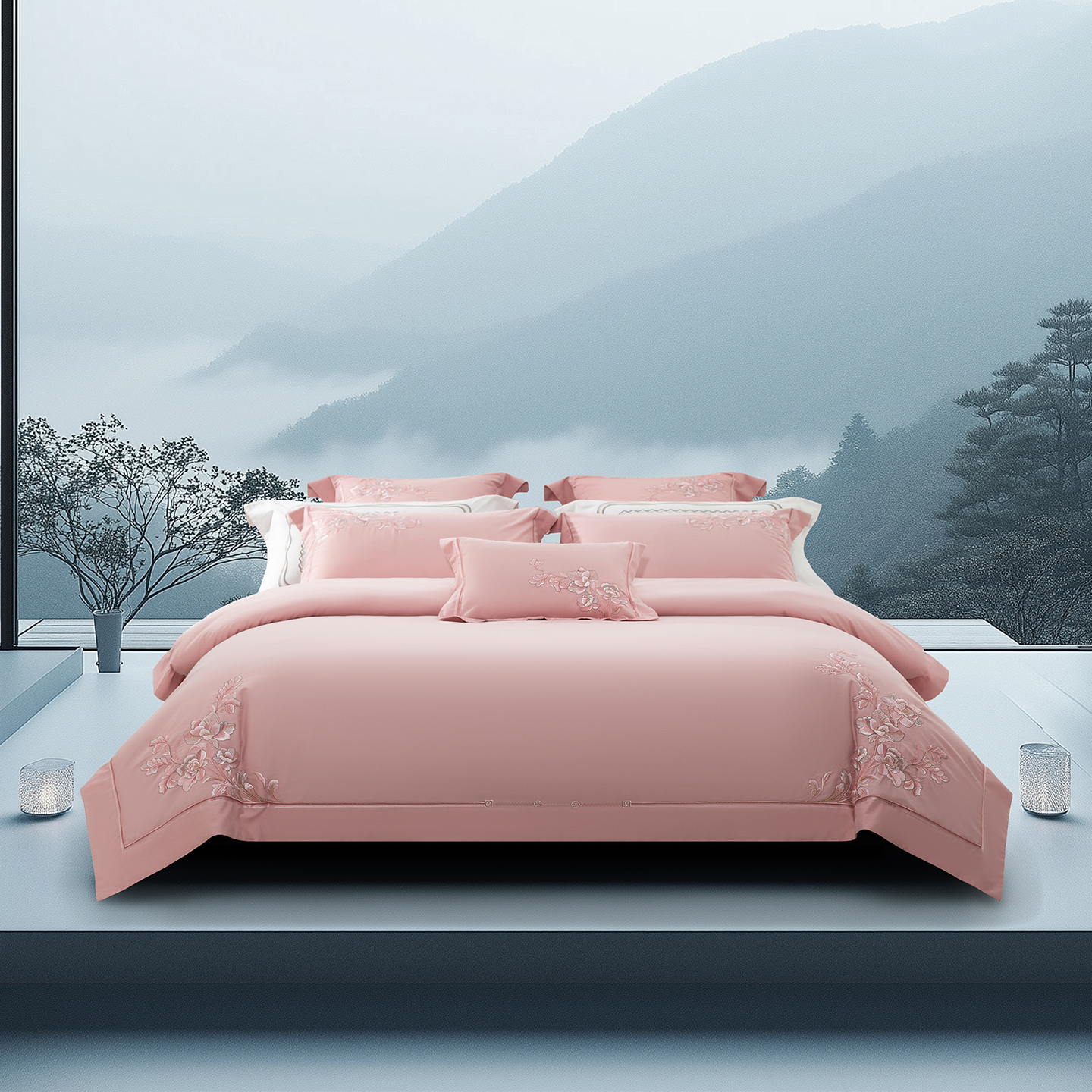 商品名称:高大尚婚庆馆 2025新款长绒棉磨毛四件套-浮生若梦 浮生若梦-落樱粉