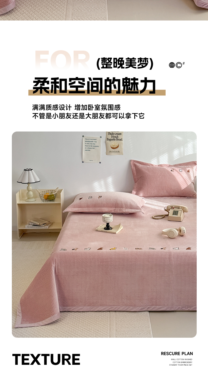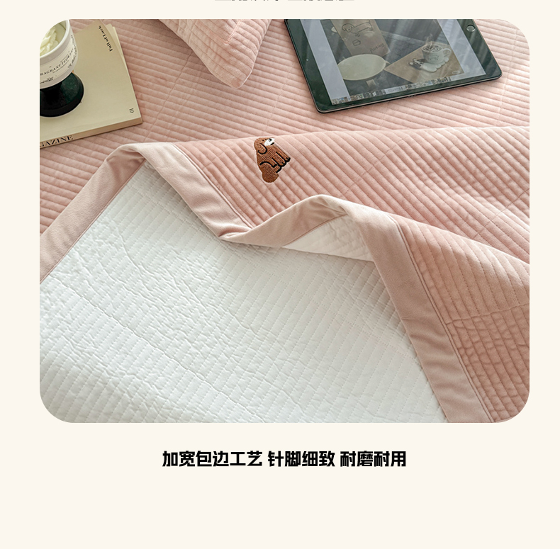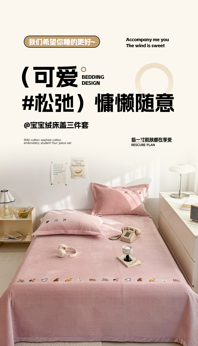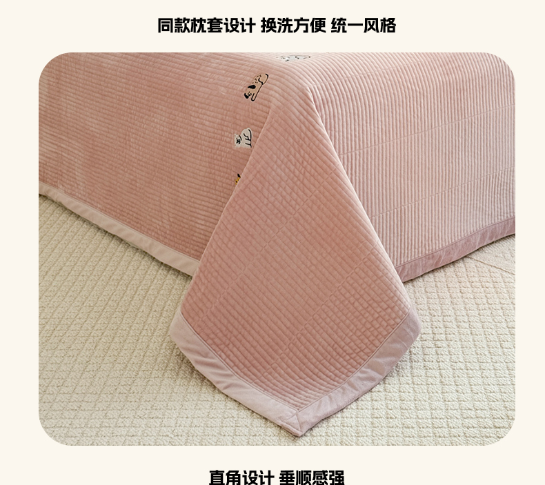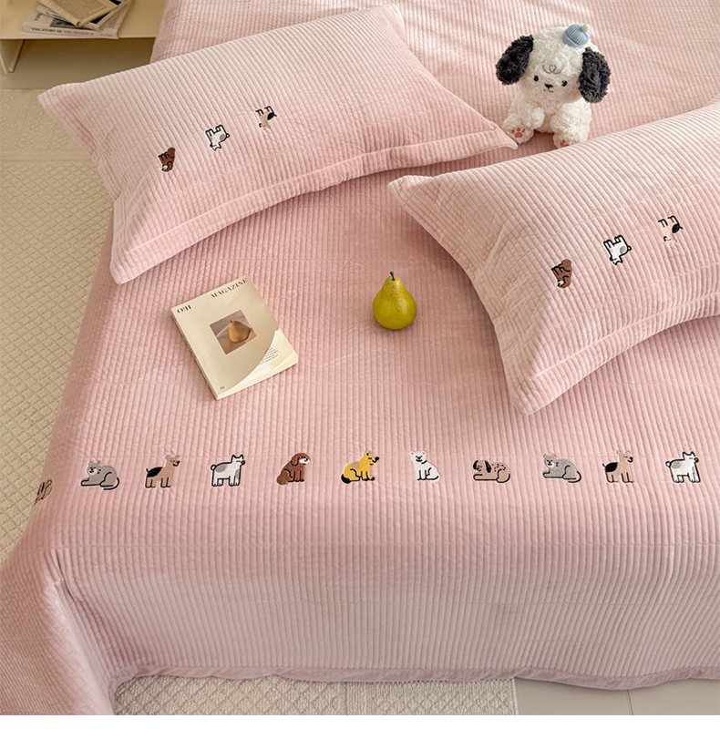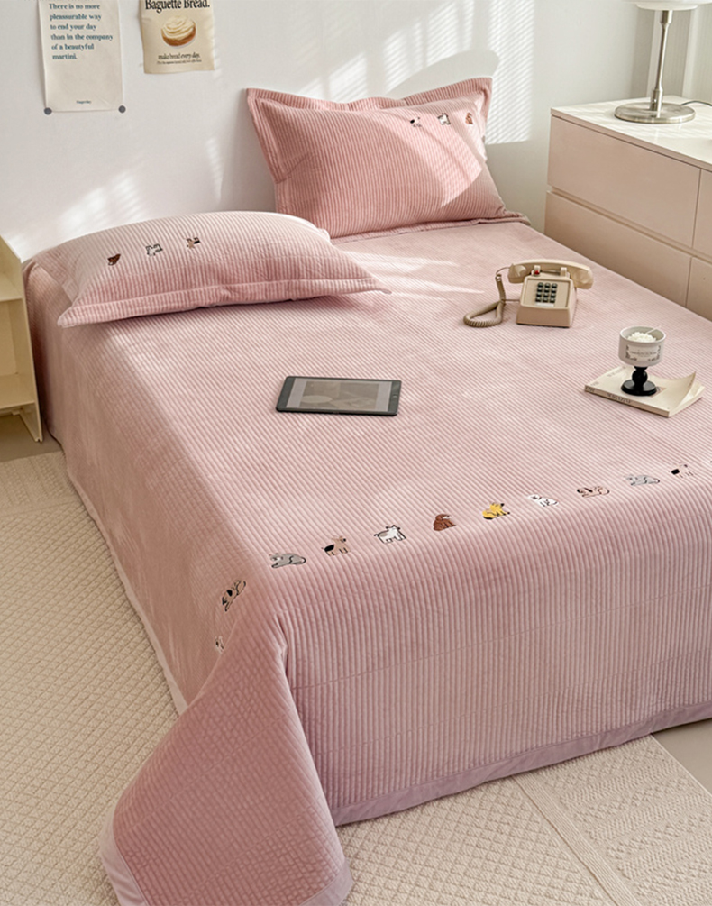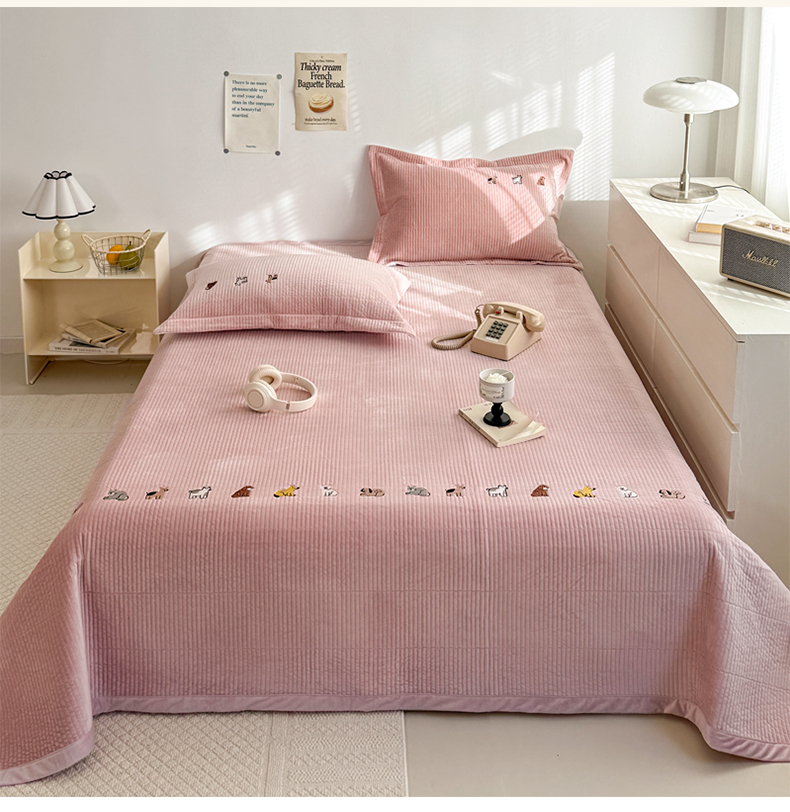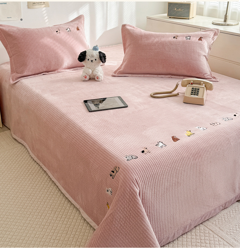 法芙娜家纺 2025新款可爱刺绣宝宝绒床盖三件套 浅粉