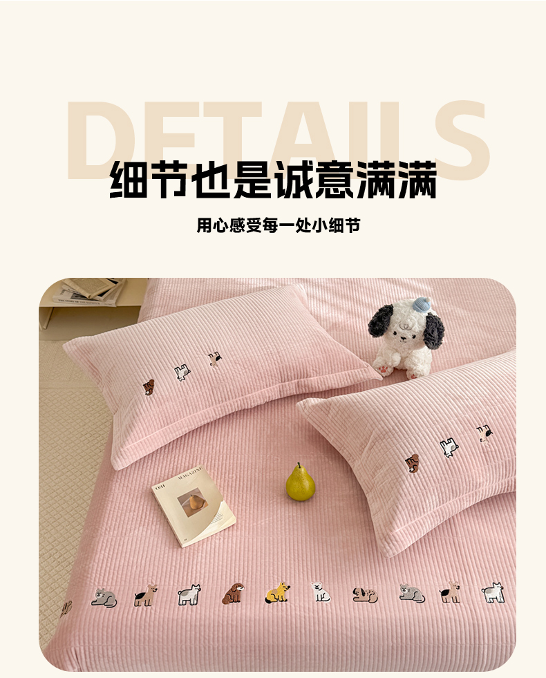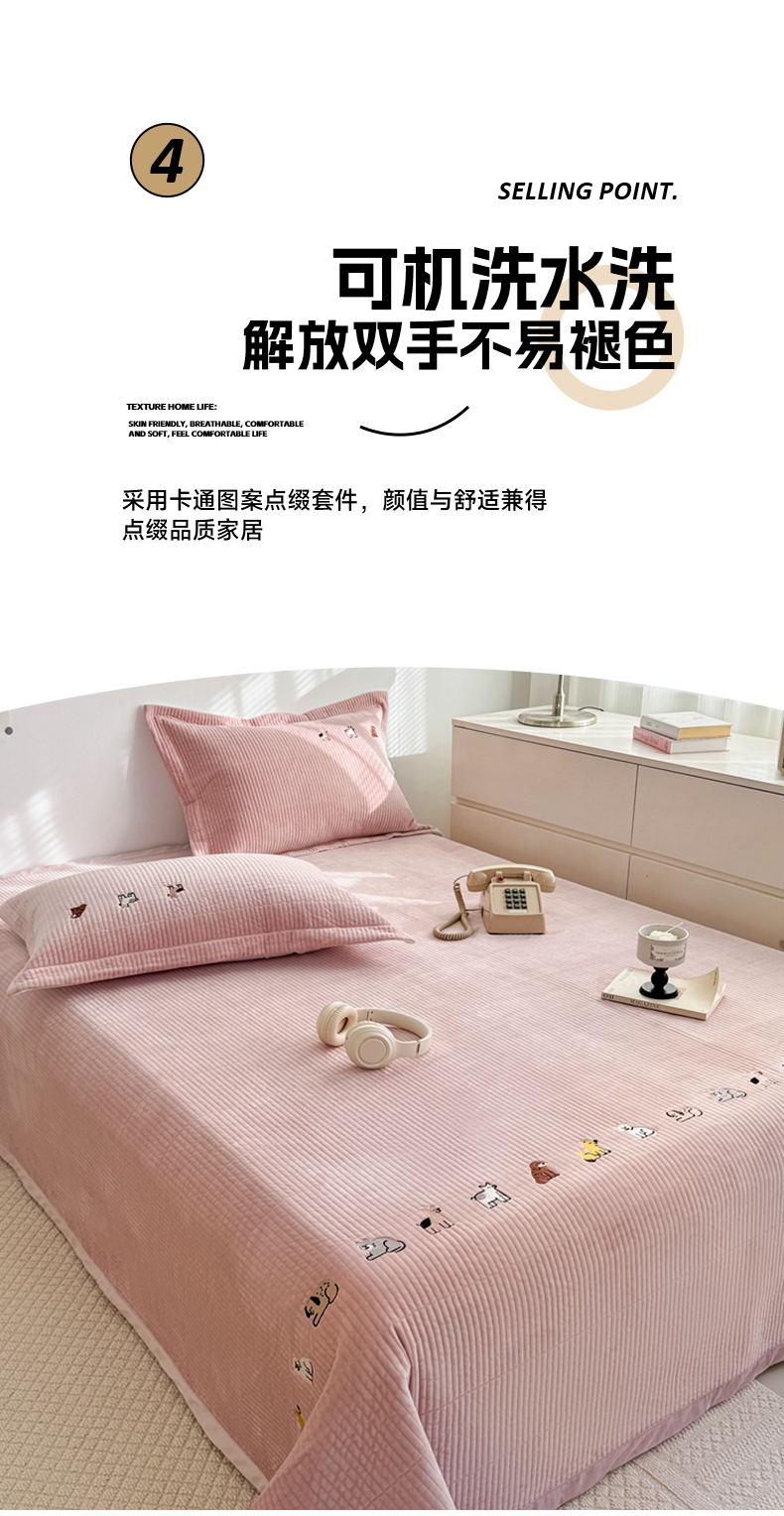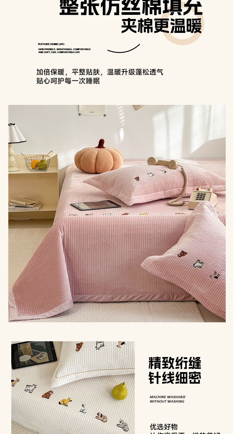 商品名称:法芙娜家纺 2025新款可爱刺绣宝宝绒床盖三件套 浅粉