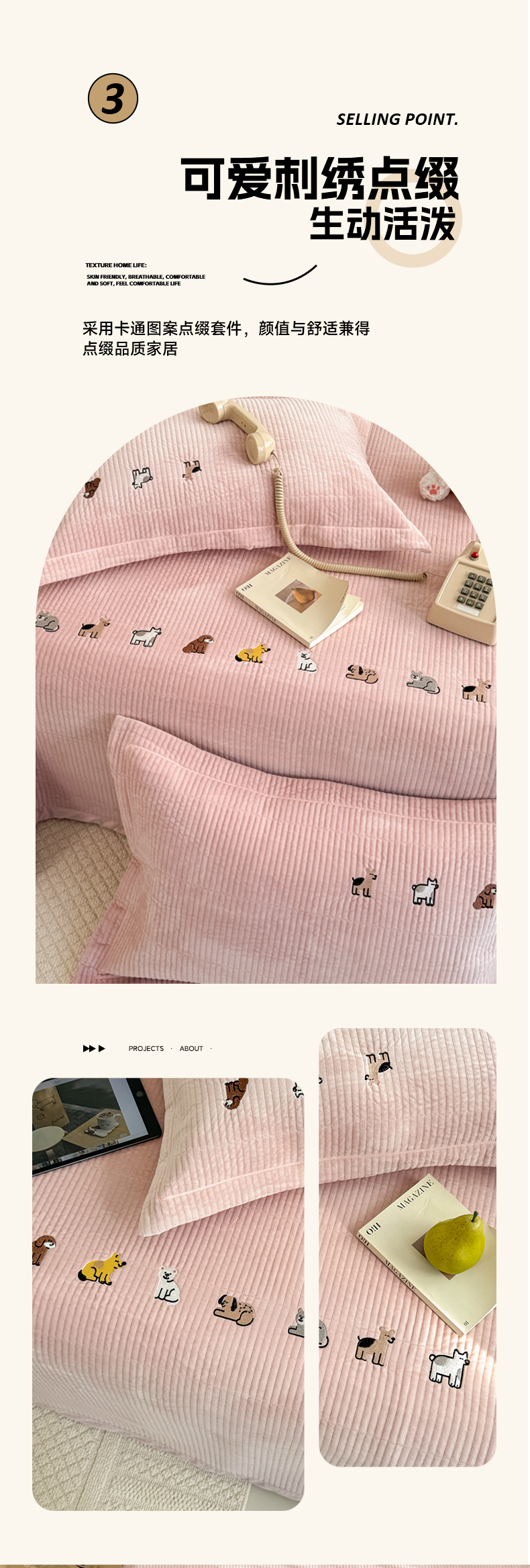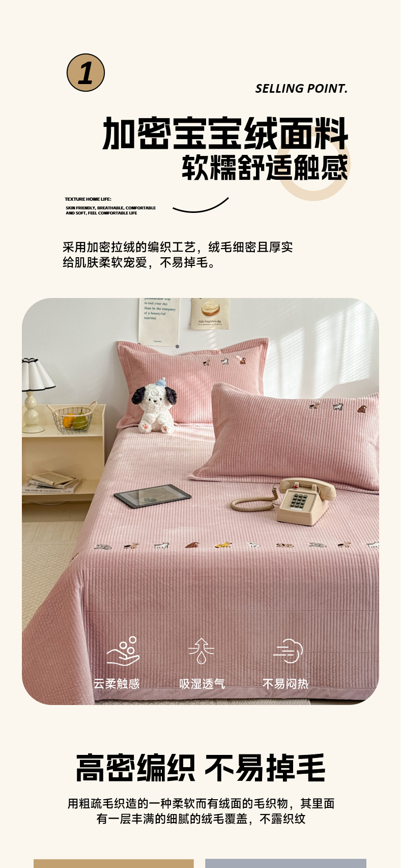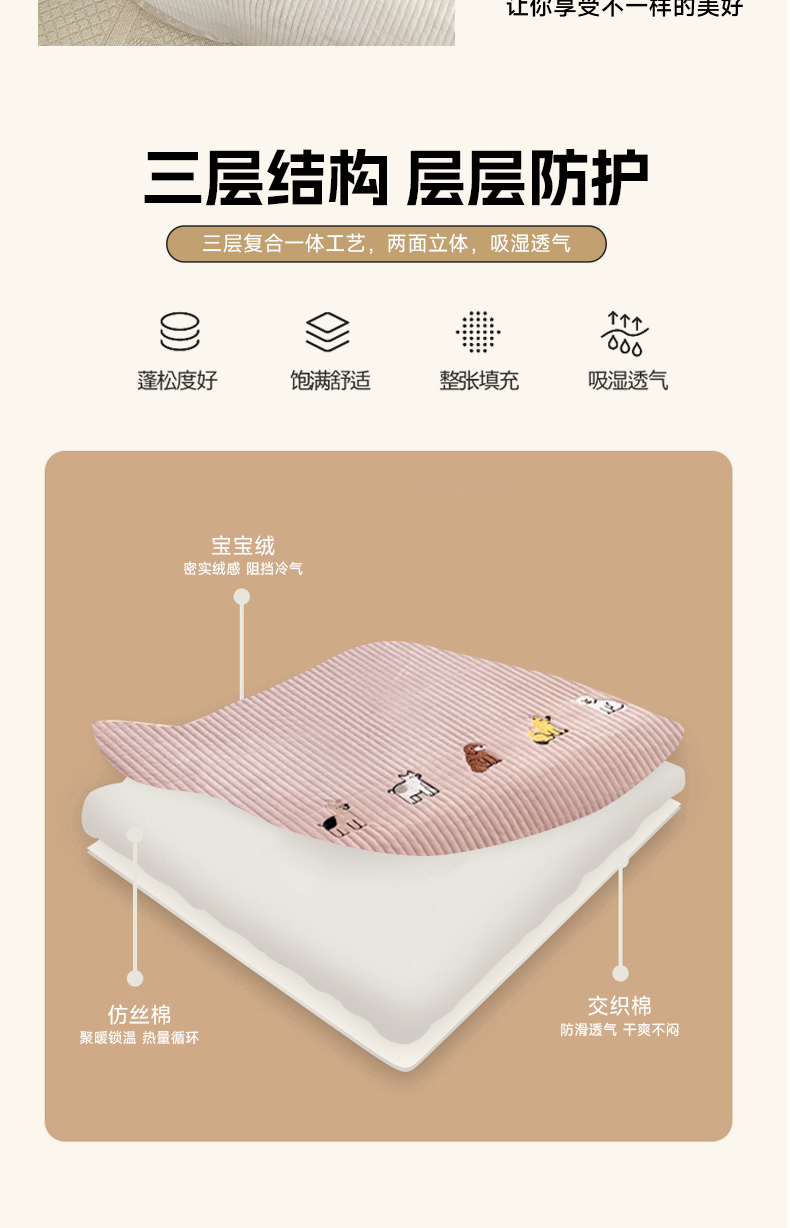 商品名称:法芙娜家纺 2025新款可爱刺绣宝宝绒床盖三件套 浅粉