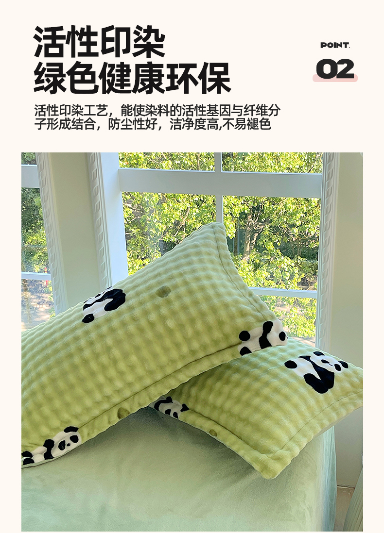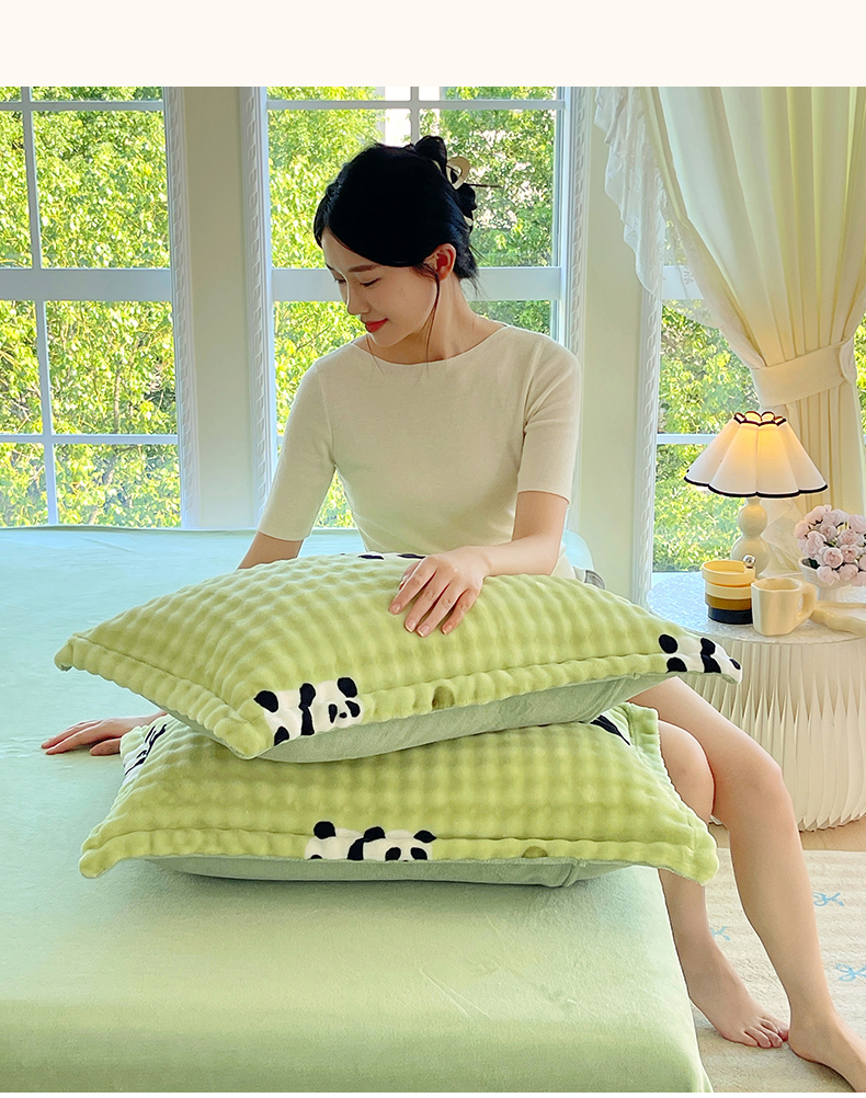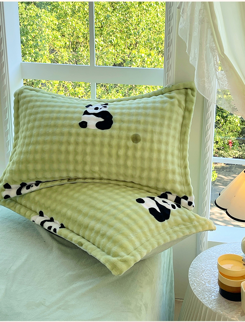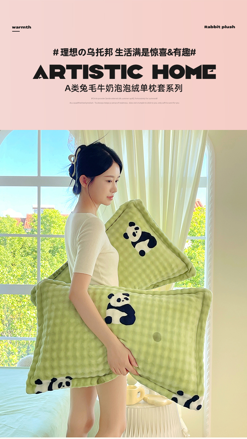 凯儿家纺 2025新款兔毛牛奶泡泡绒单枕套单品枕套枕套单件 小熊猫绿
