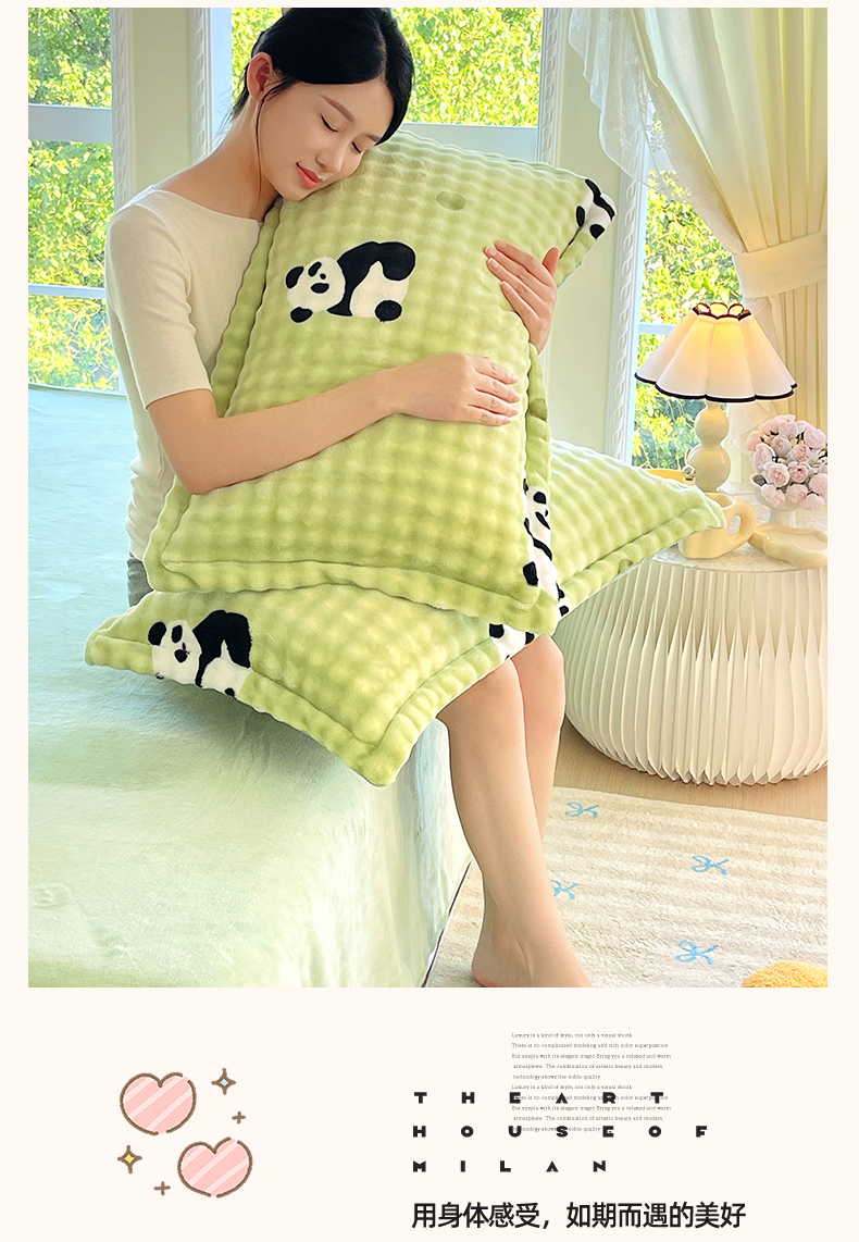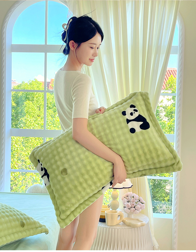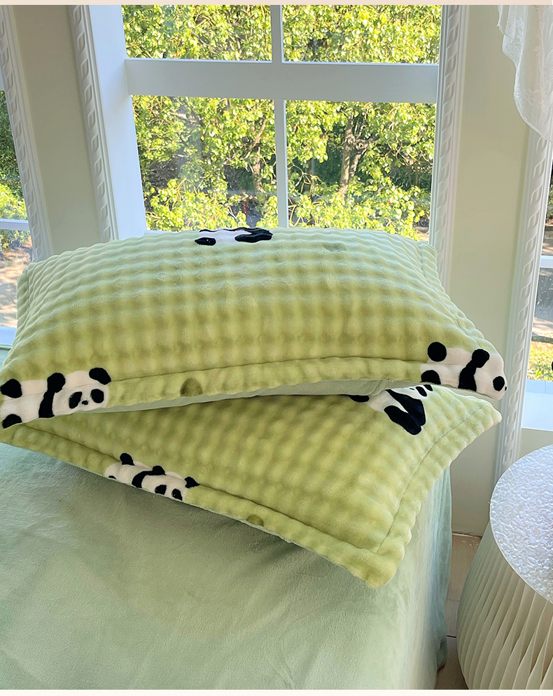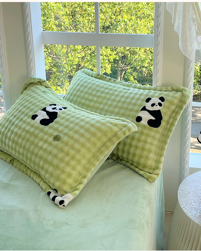 凯儿家纺 2025新款兔毛牛奶泡泡绒单枕套单品枕套枕套单件 小熊猫绿