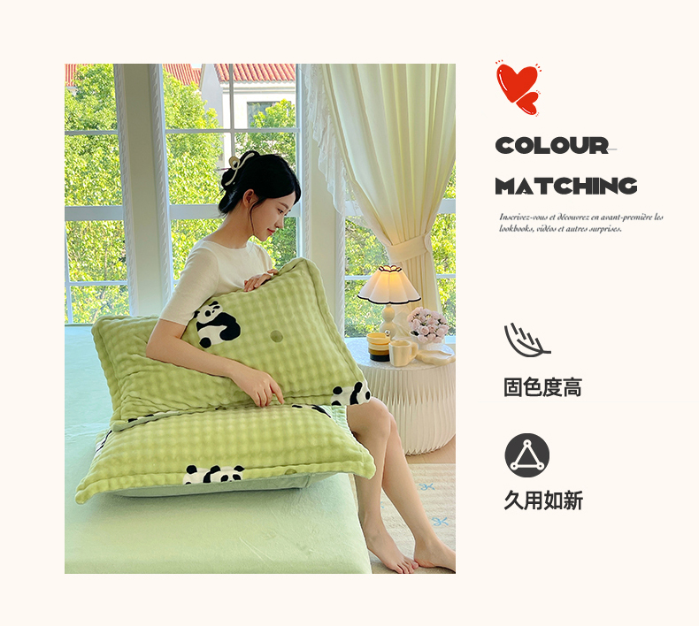 商品名称:凯儿家纺 2025新款兔毛牛奶泡泡绒单枕套单品枕套枕套单件 小熊猫绿