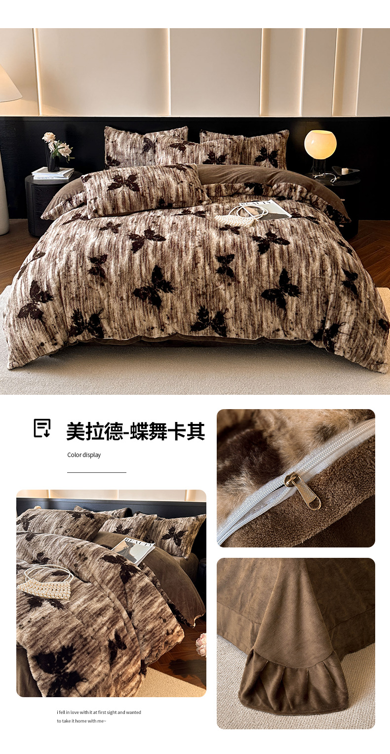 当前位置: 91家纺网 > 商品网购 > 床品套件 > 四件套 > 牛奶绒四件套 > 金阳光家纺 2025新款A类高克重兔毛绒保暖印花牛奶绒四件套 美拉德系列 美拉德-漫漫