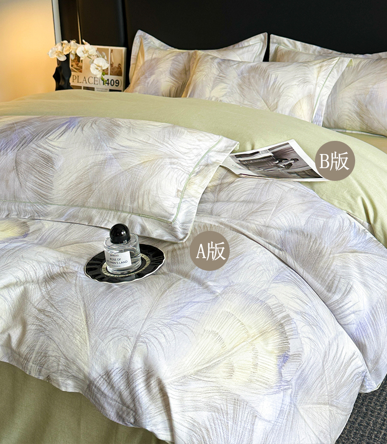 海洋家纺 2025新款100%全棉磨毛数码印花四件套加厚全棉四件套-提供买家秀 羽纱 浅绿