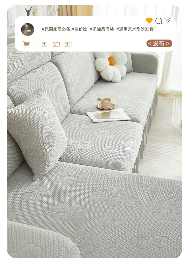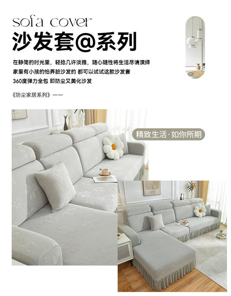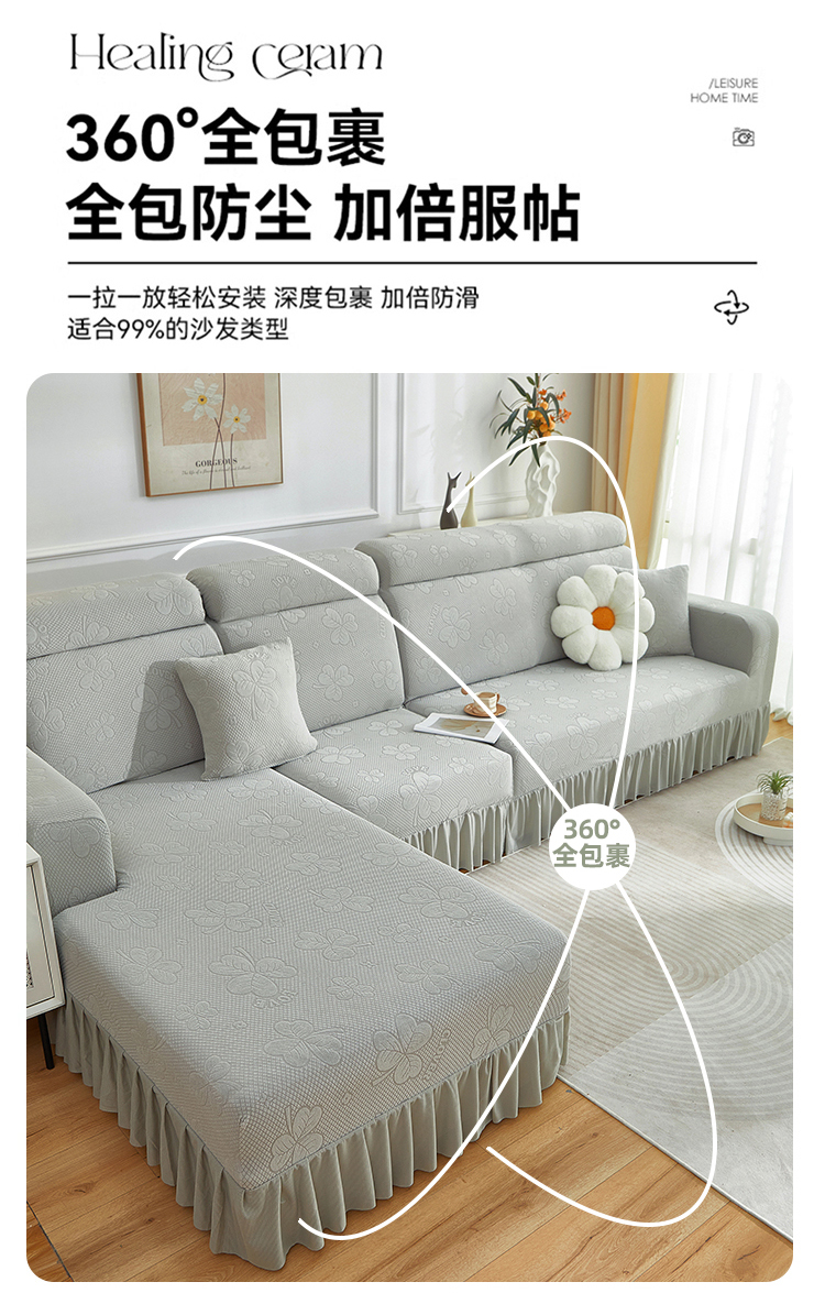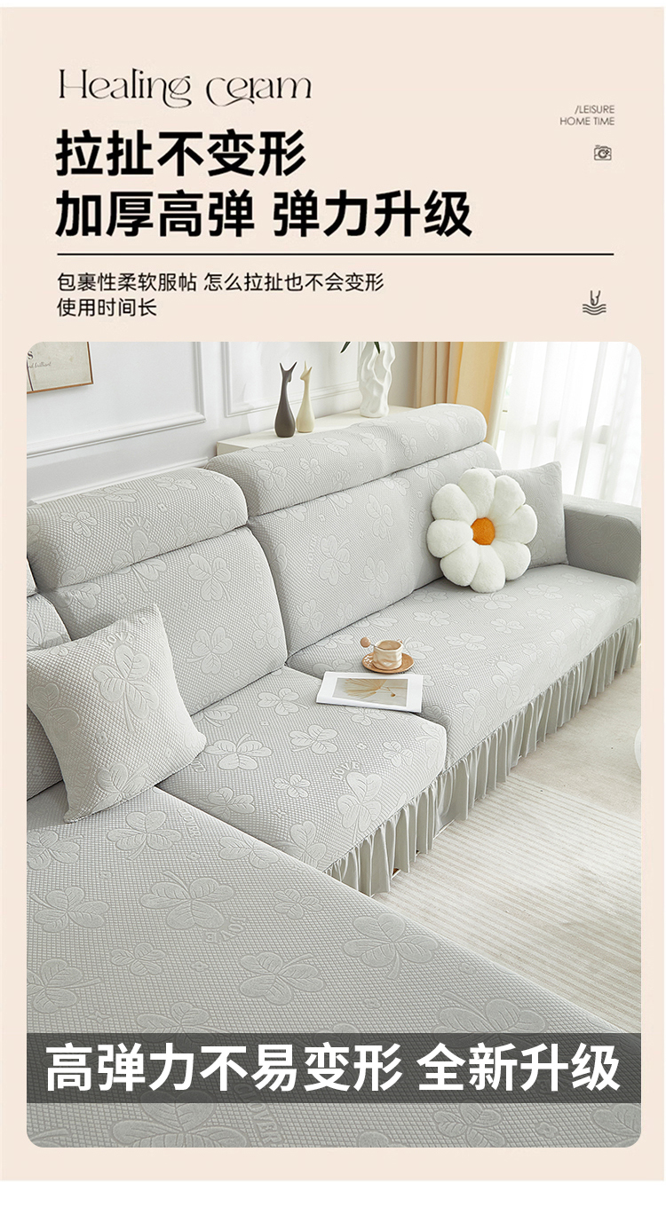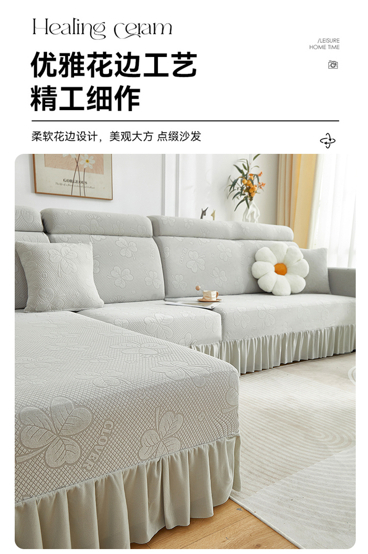 当前位置: 91家纺网 > 商品网购 > 居家布艺 > 坐垫/椅垫/沙发垫 > 沙发垫 > 千彤沙发垫 2025新款防滑防尘优雅百褶裙边全包款沙发笠沙发套罩--三叶草系列 浅灰