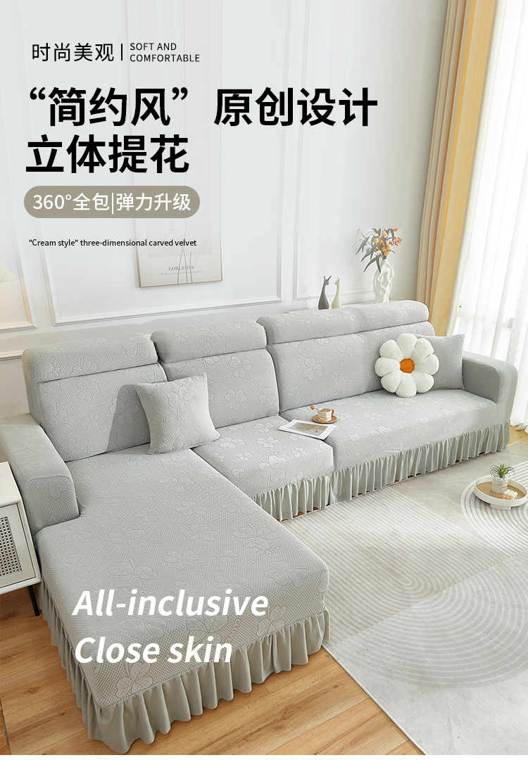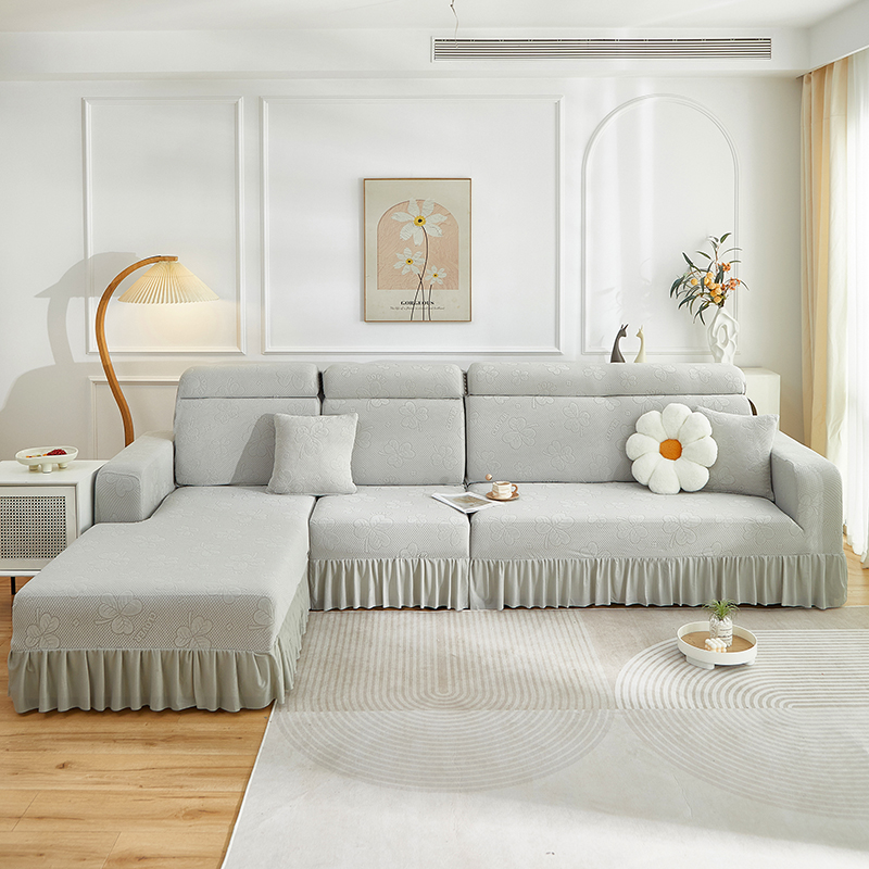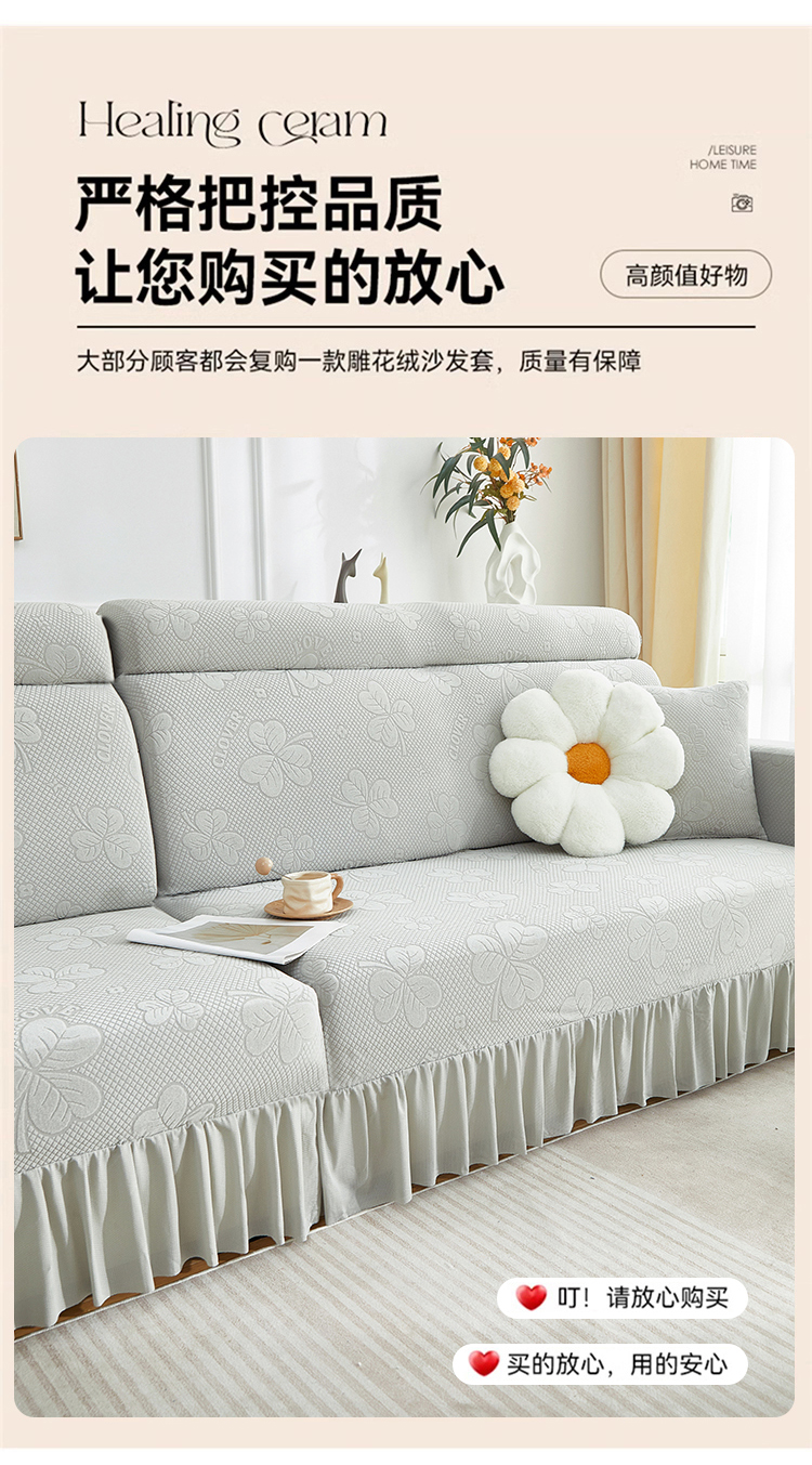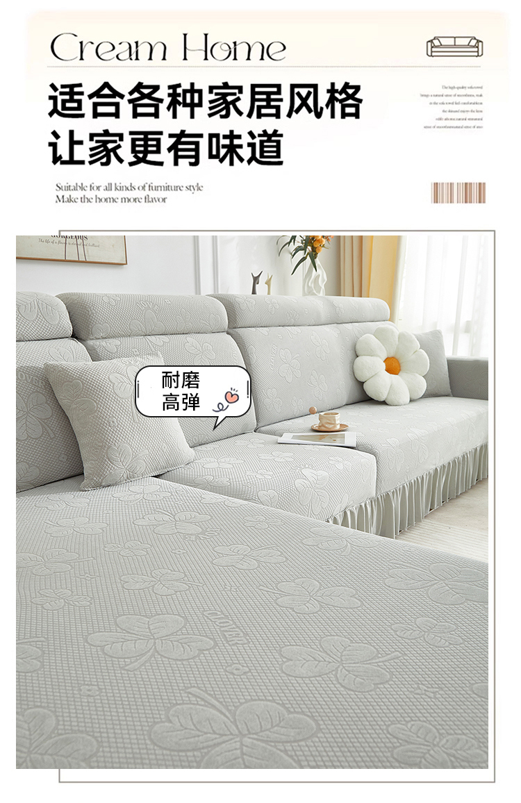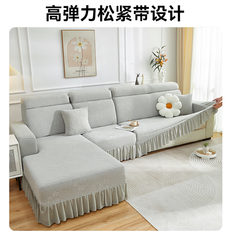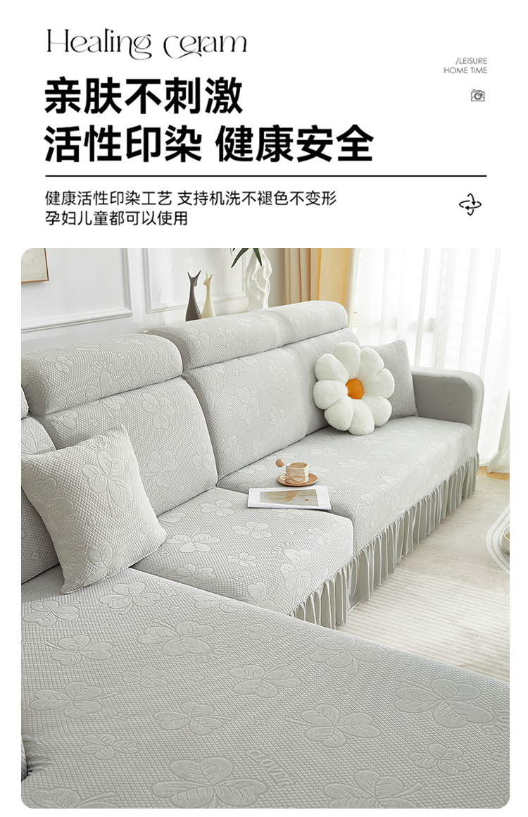 当前位置: 91家纺网 > 商品网购 > 居家布艺 > 坐垫/椅垫/沙发垫 > 沙发垫 > 千彤沙发垫 2025新款防滑防尘优雅百褶裙边全包款沙发笠沙发套罩--三叶草系列 浅灰