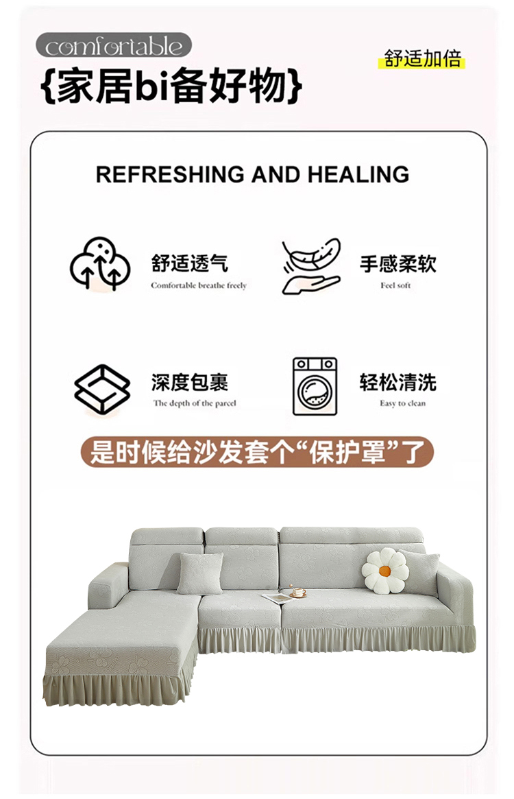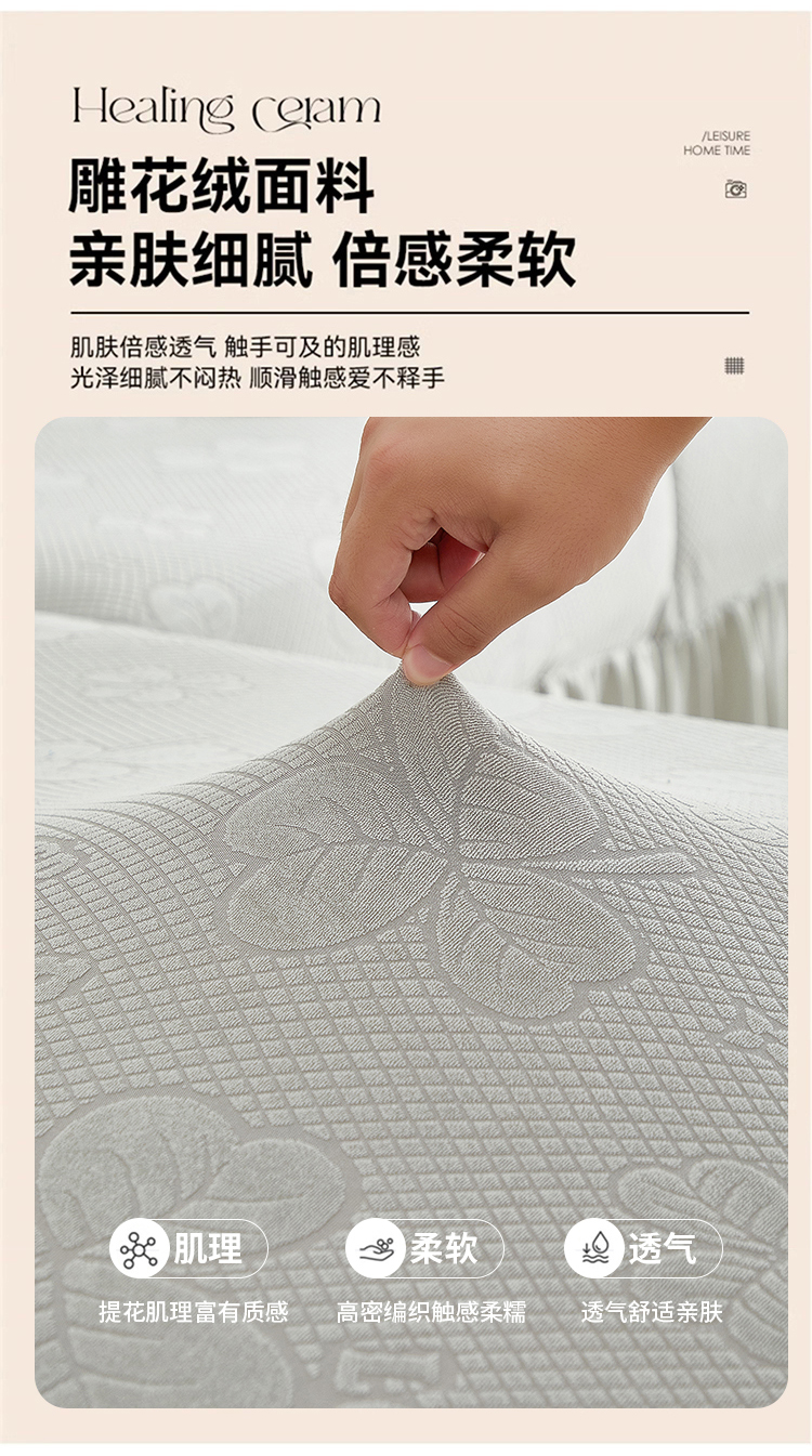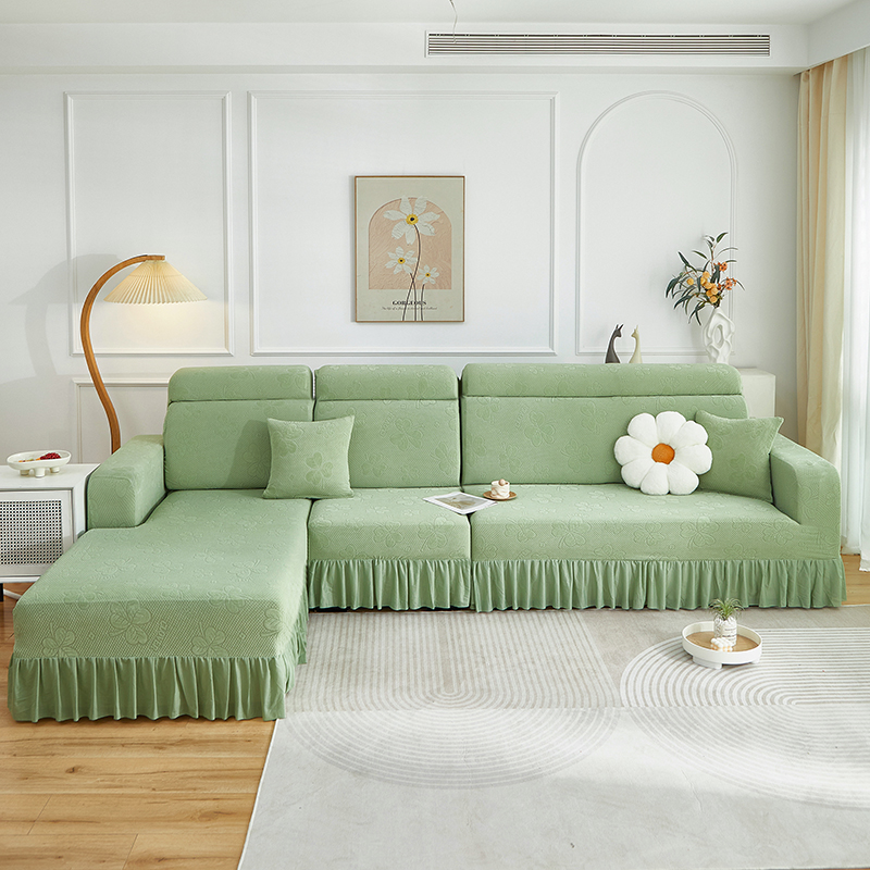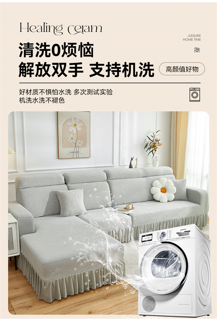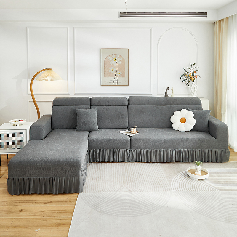 当前位置: 91家纺网 > 商品网购 > 居家布艺 > 坐垫/椅垫/沙发垫 > 沙发垫 > 千彤沙发垫 2025新款防滑防尘优雅百褶裙边全包款沙发笠沙发套罩--三叶草系列 浅灰