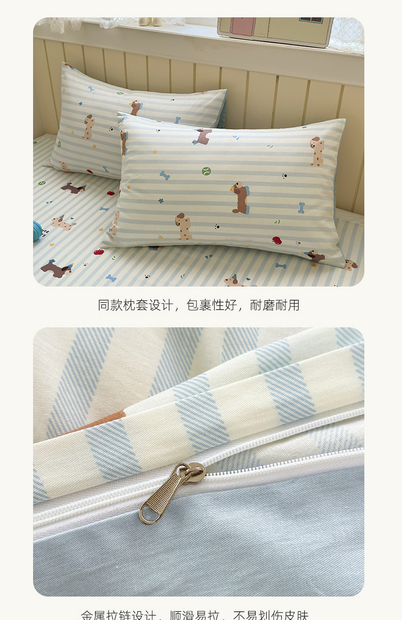 当前位置: 91家纺网 > 商品网购 > 床品套件 > 四件套 > 全棉普通四件套 > 典曼家纺 2025新款40支学生季卡通印花四件套 椰蓝小腊肠